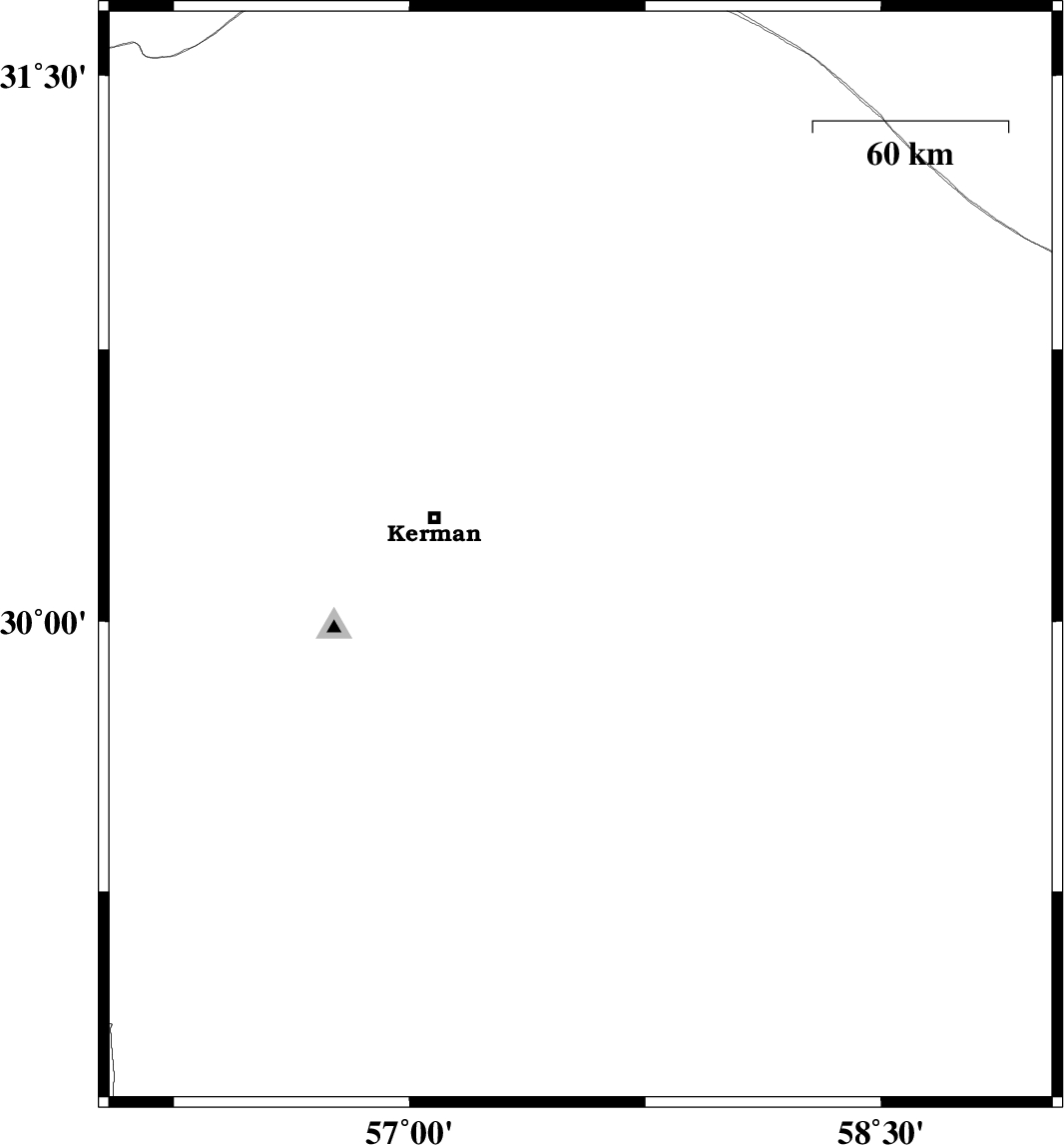 | 2017/08/25 | 10:12:51.9 | 14:42:51.9 | 30.176 | 57.544 | 14 | ML2.8 | Kerman Province, 46 km South-East of Kerman | ||