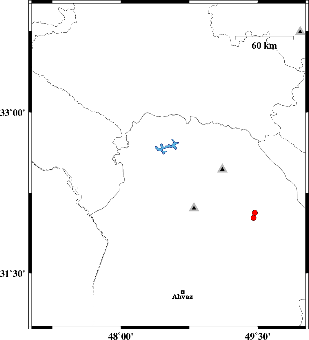 | 2017/08/20 | 02:08:17.1 | 06:38:17.1 | 32.042 | 49.241 | 15 | ML2.9 | Khoozestan Province, 13 km North of Masjed Soleyman |