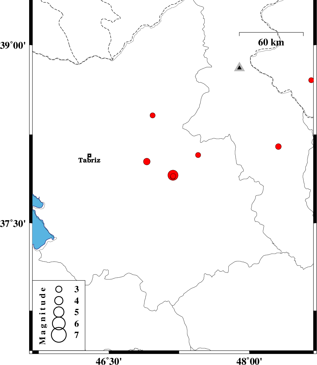 | 2017/08/16 | 00:20:06.4 | 04:50:06.4 | 38.021 | 46.904 | 15 | ML3.3 | Azarbaijan Sharghi Province, 21 km North of Bostanabad | ||