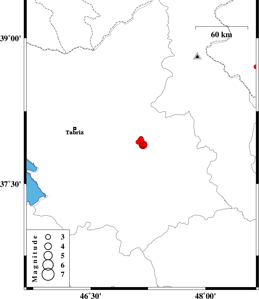 2017/08/29 | 04:00:29.4 | 08:30:29.4 | 37.953 | 47.156 | 18 | ML:3.7 | Azarbaijan Sharghi Province, 33 km South of Haris | ||