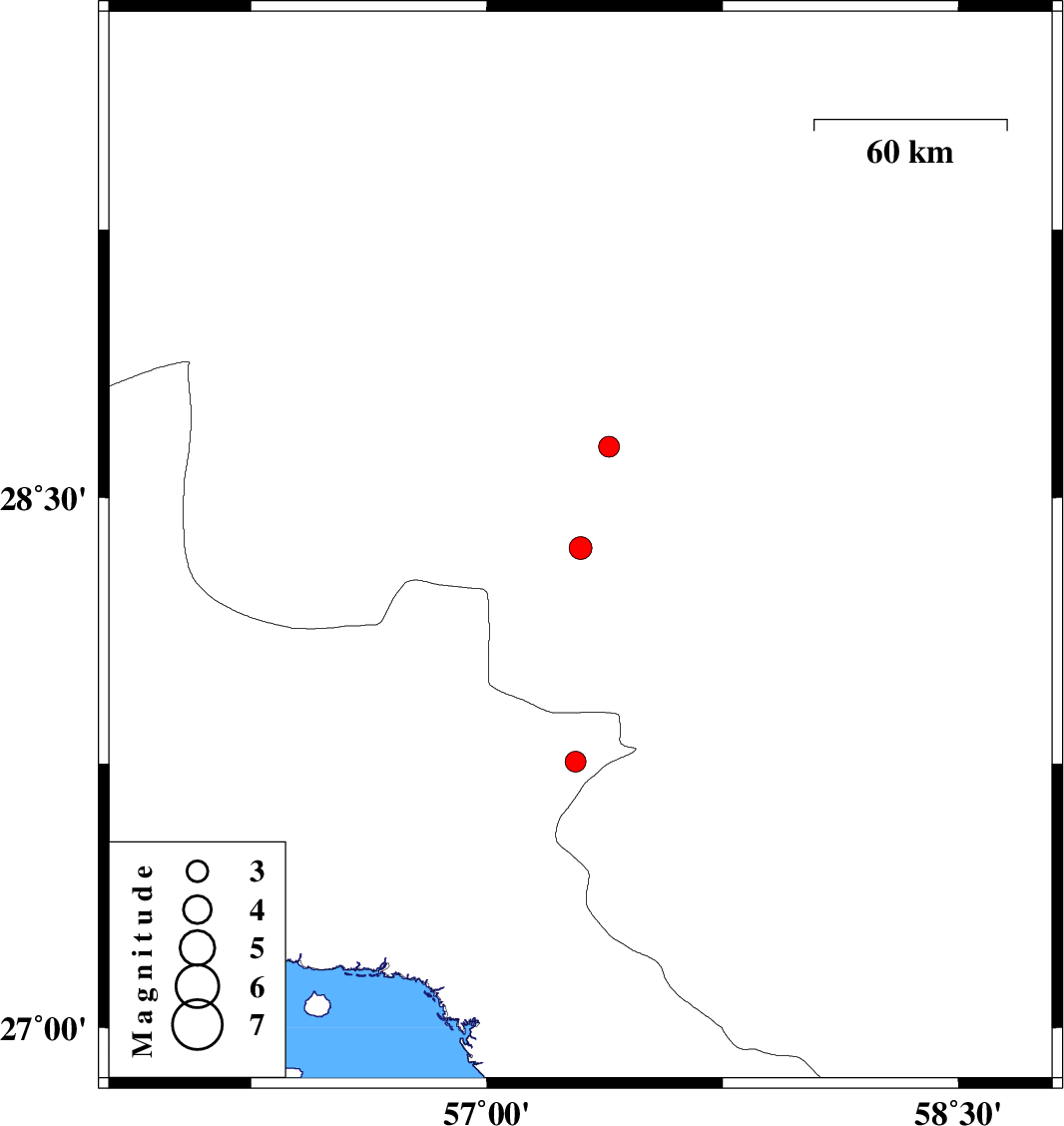 | 2017/08/30 | 08:35:44.5 | 13:05:44.5 | 28.358 | 57.298 | 14 | ML3.2 | Kerman Province, 55 km South-West of Jiroft | ||