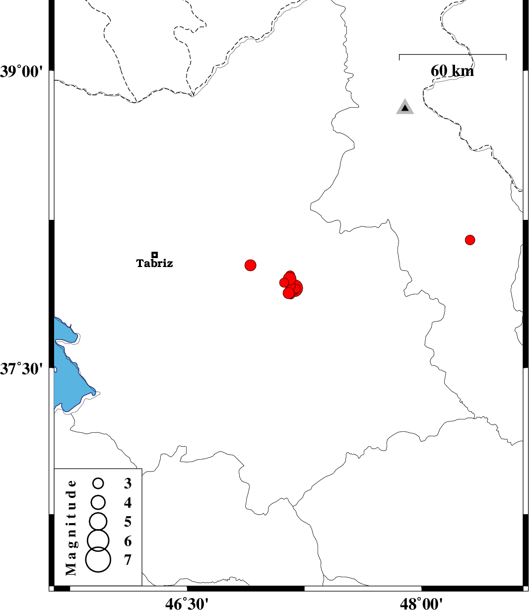 | 2017/08/16 | 00:20:06.4 | 04:50:06.4 | 38.021 | 46.904 | 15 | ML3.3 | Azarbaijan Sharghi Province, 21 km North of Bostanabad |
