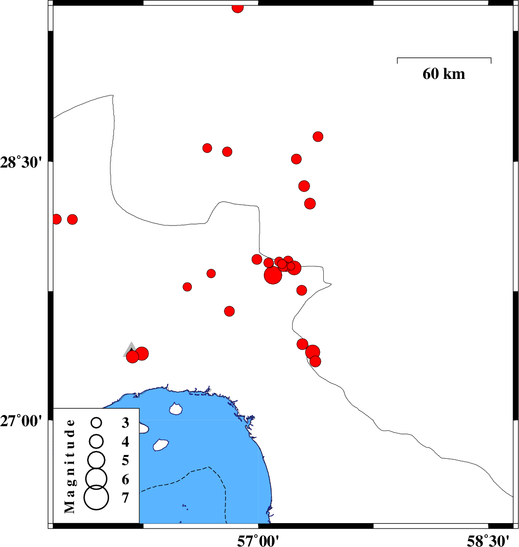 2017/08/31 02:43:03.6 07:13:03.6 27.92557.19316 ML3 Kerman Province, 49 km -West of Kahnuj