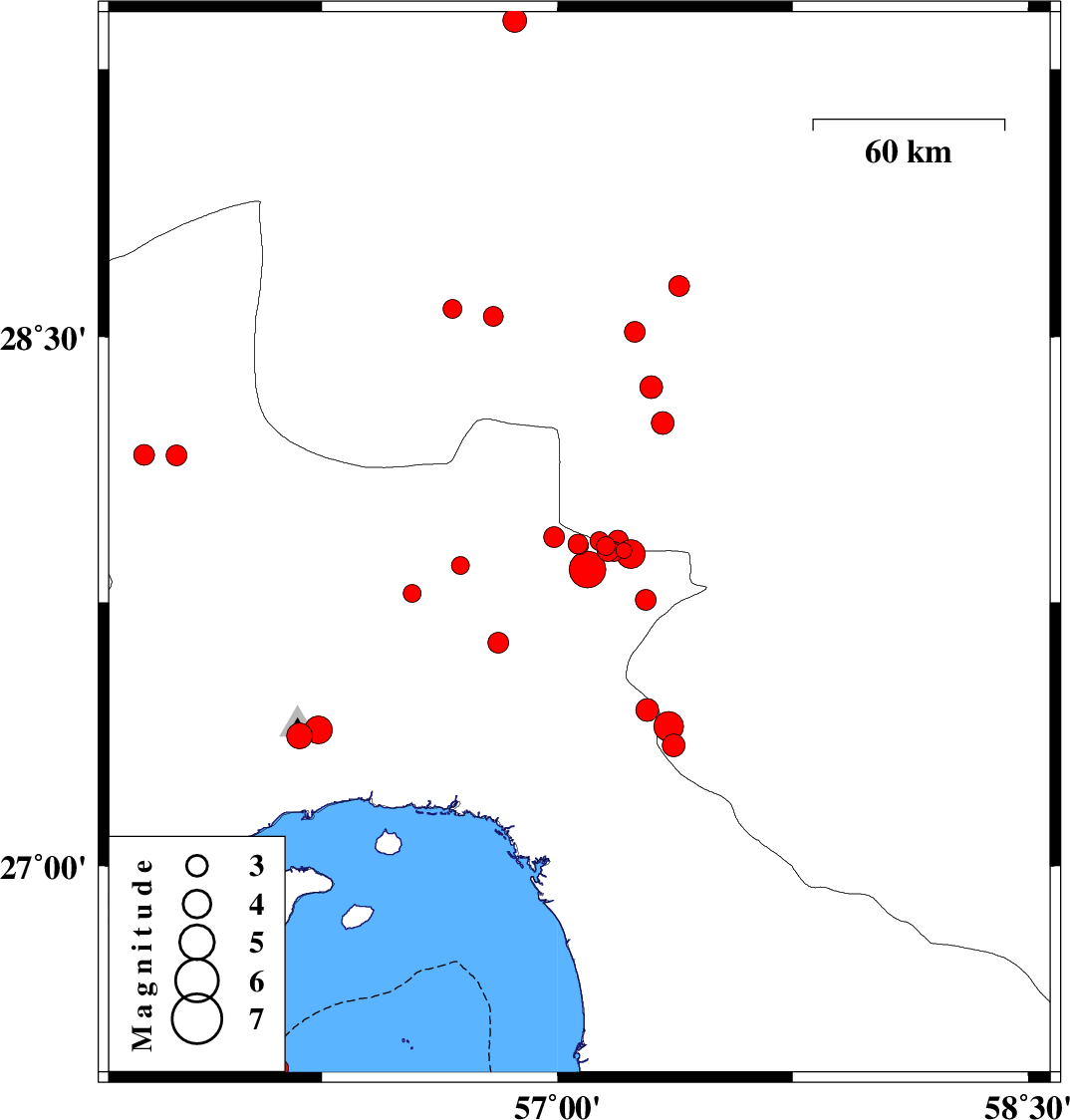 | 2017/08/06 | 09:24:39.6 | 13:54:39.6 | 26.513 | 55.722 | 23 | ML3.6 | Persian Gulf, 87 km -East of Bandar-e lengeh | ||