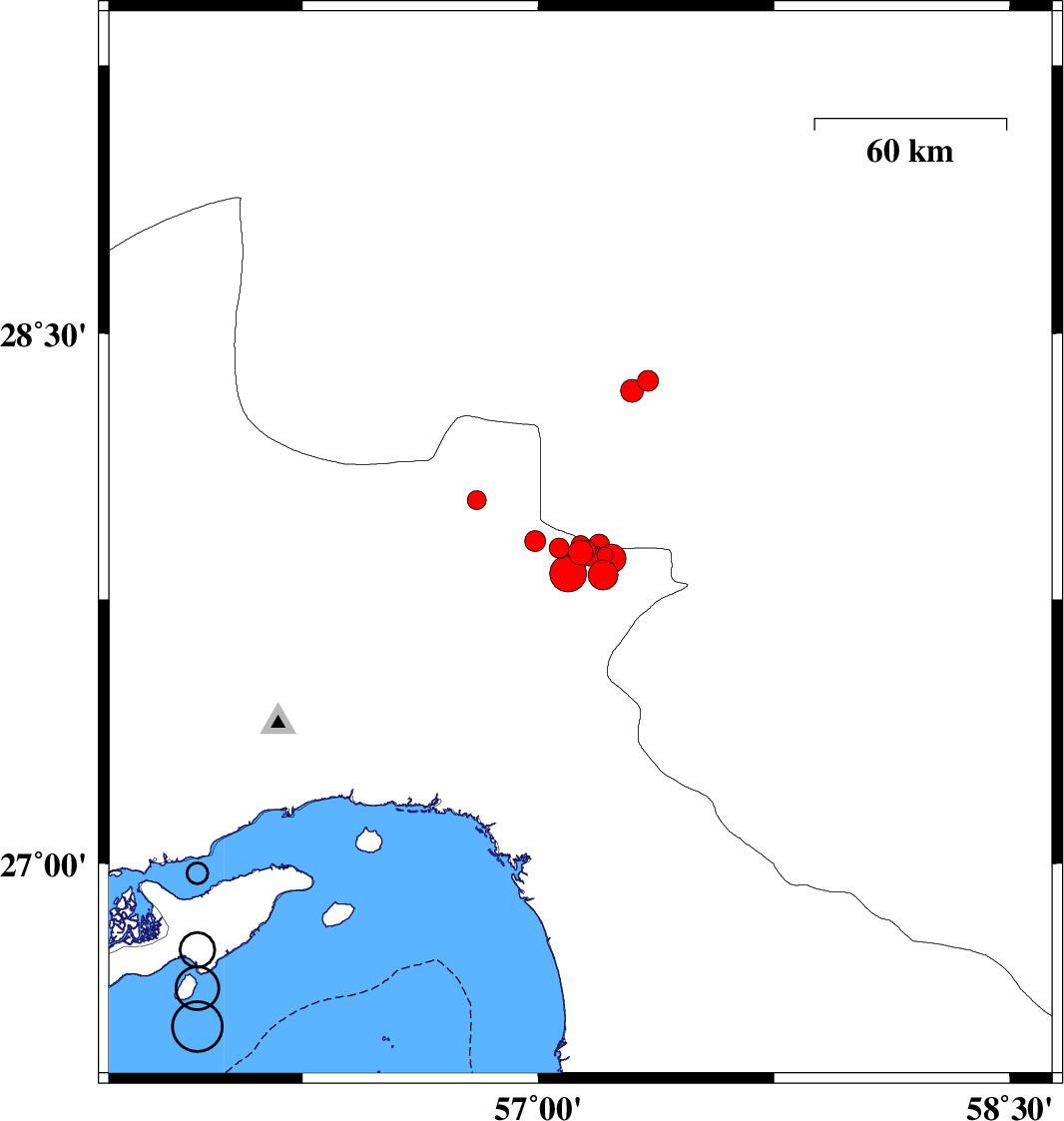 | 2017/09/01 | 06:10:43.4 | 10:40:43.4 | 27.839 | 57.206 | 15 | ML4.2 | Hormozgan Province, 46 km North of Dehbarez | ||