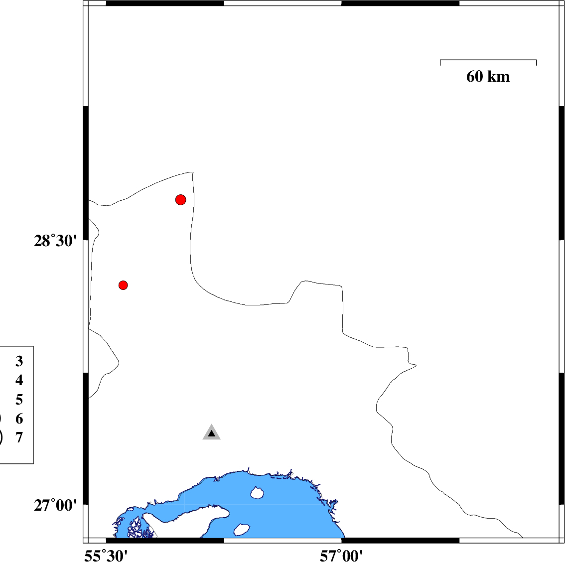 | 2017/09/13 | 06:35:49.6 | 11:05:49.6 | 27.826 | 56.518 | 14 | ML2.6 | Hormozgan Province, 75 km North-East of Bandar-e abbas |