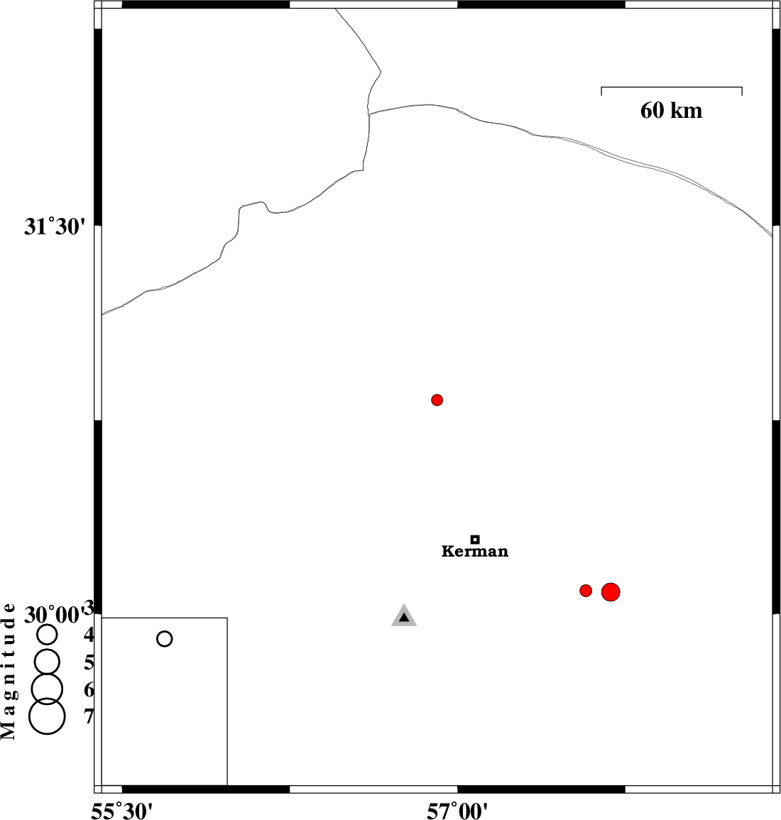 | 2017/09/10 | 23:53:51.3 | 04:23:51.3 | 30.084 | 57.685 | 6 | ML3.6 | Kerman Province, 63 km South-East of Kerman |
