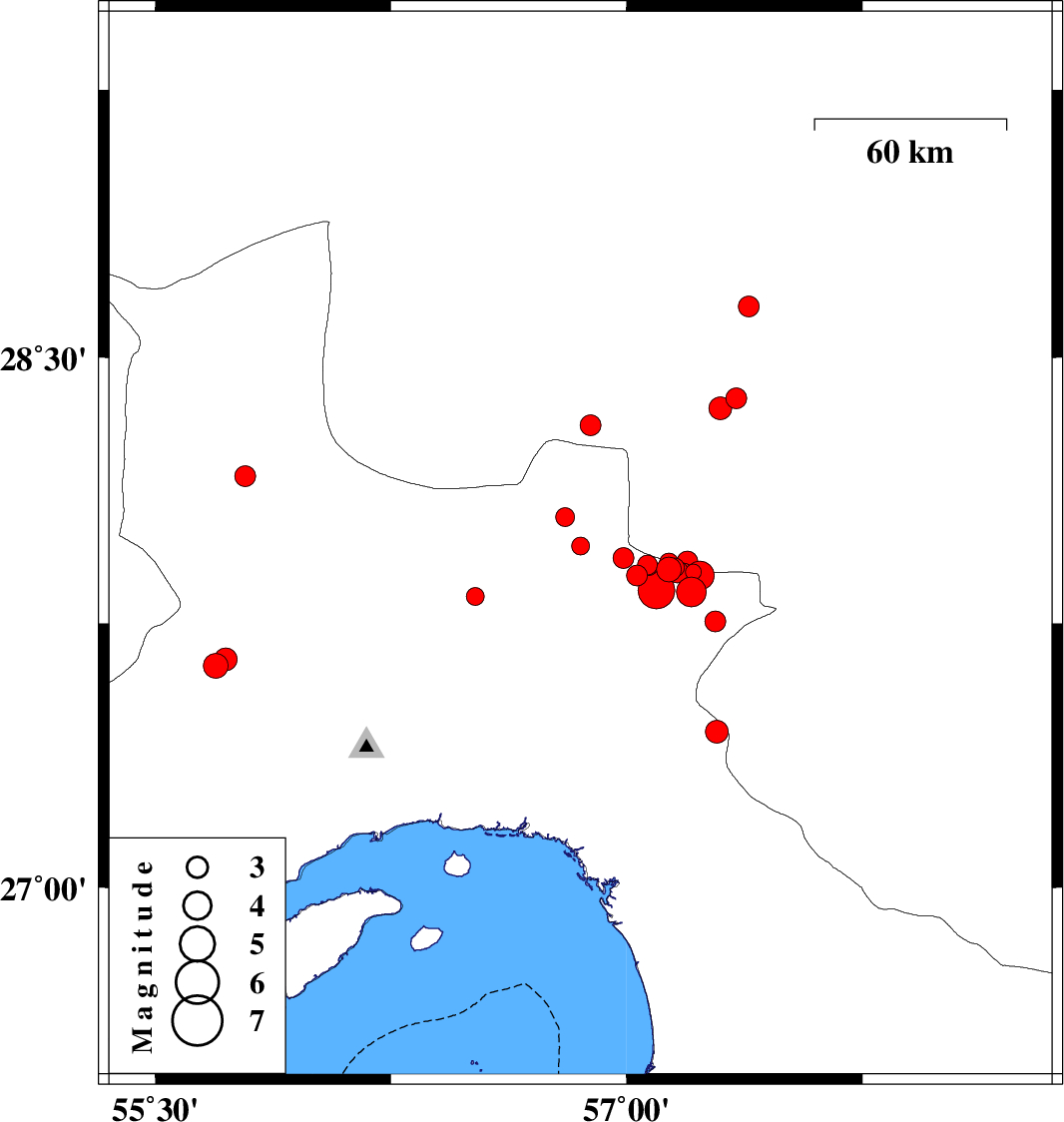 | 2017/09/01 | 06:10:43.4 | 10:40:43.4 | 27.839 | 57.206 | 15 | ML4.2 | Hormozgan Province, 46 km North of Dehbarez | ||