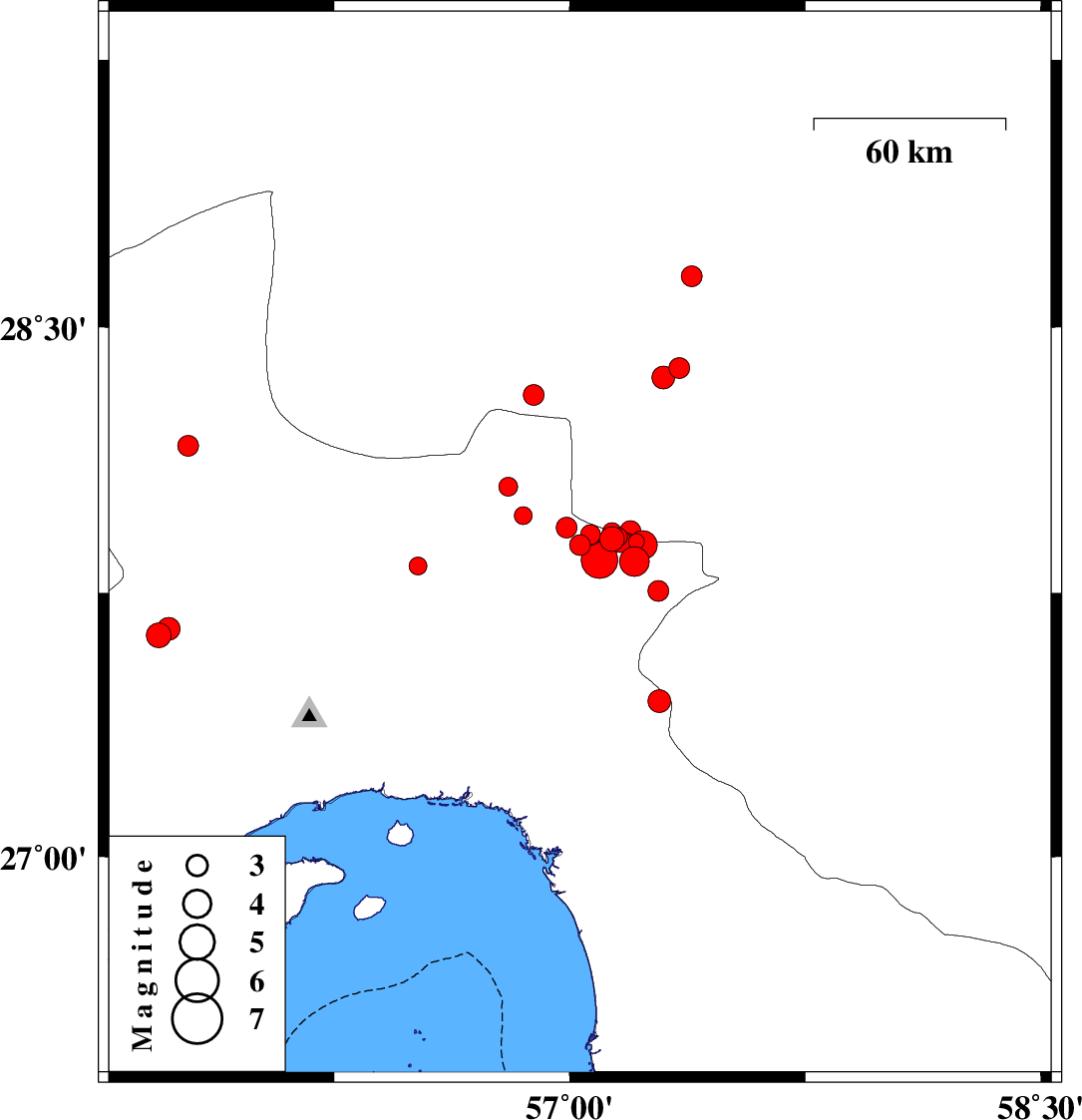 | 2017/09/01 | 06:10:43.4 | 10:40:43.4 | 27.839 | 57.206 | 15 | ML4.2 | Hormozgan Province, 46 km North of Dehbarez | ||