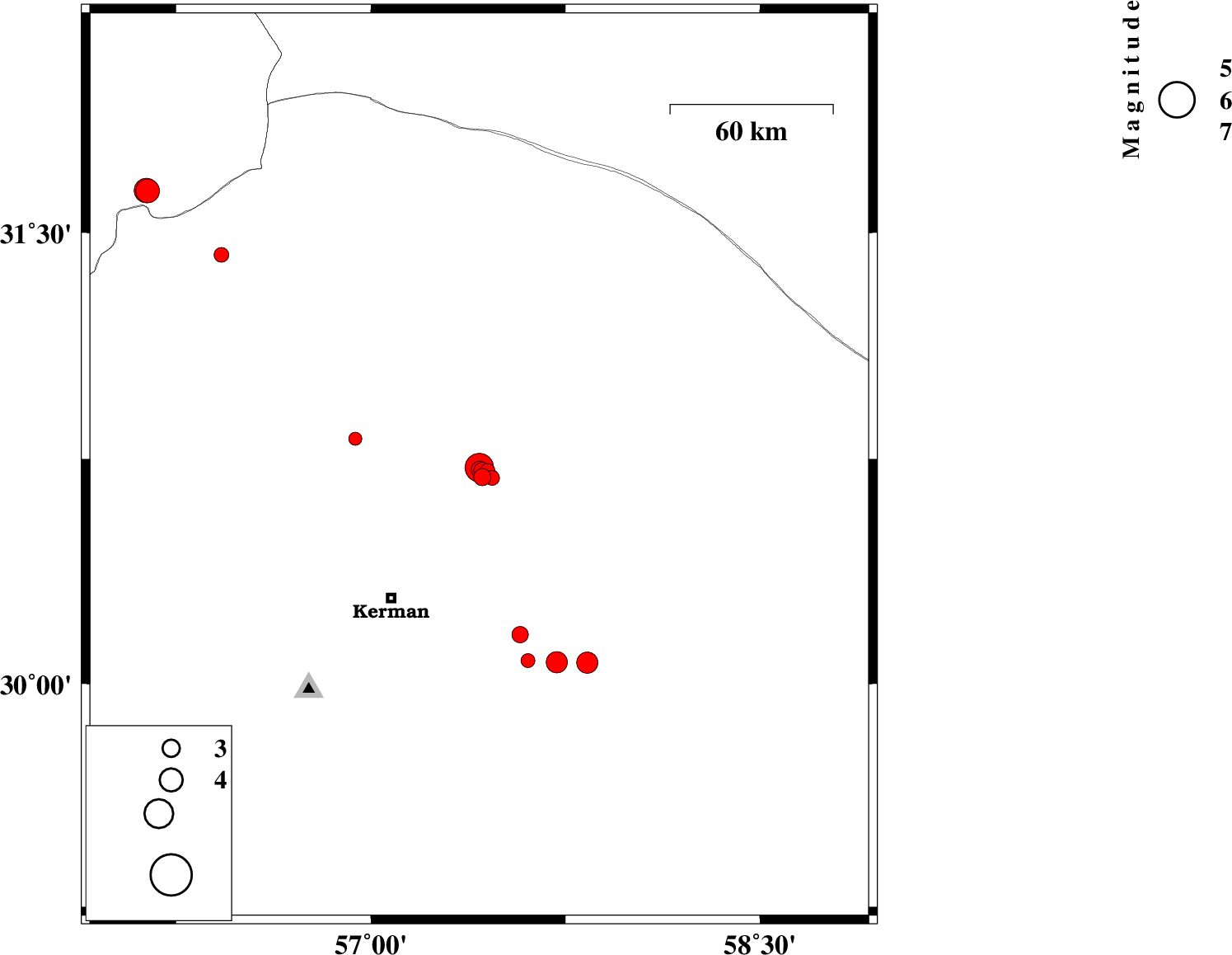 2017/09/20 14:07:38.8 18:37:38.8 30.70257.39715 ML3 Kerman Province, 55 km North-East of Kerman