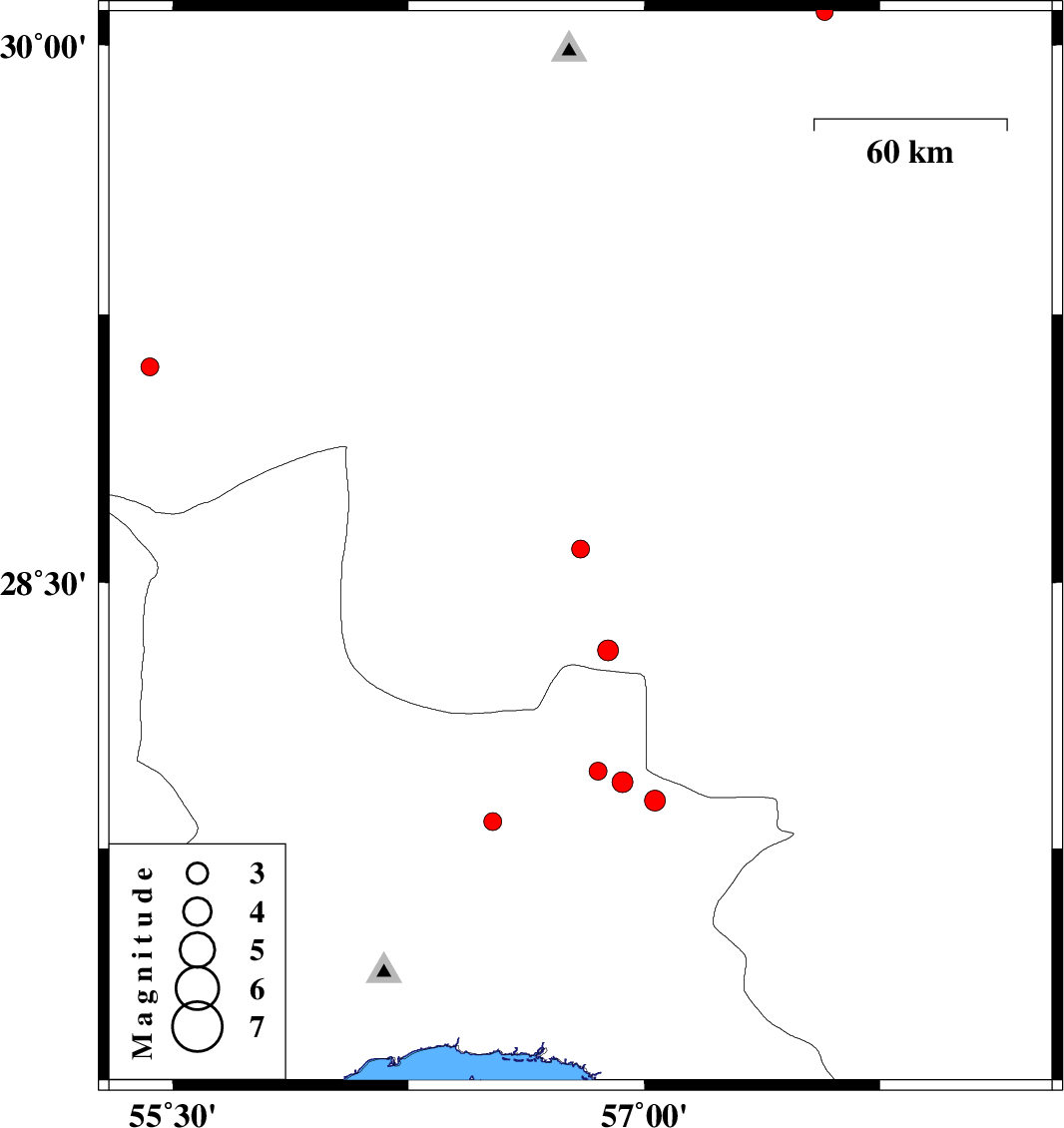 | 2017/09/14 | 01:27:09.7 | 05:57:09.7 | 30.09 | 57.574 | 17 | ML2.4 | Kerman Province, 52 km South-East of Kerman | ||