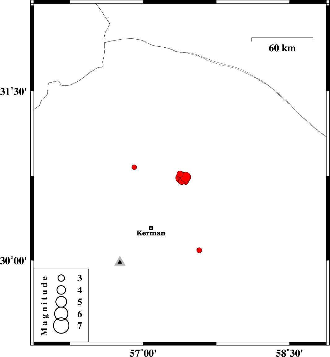 | 2017/09/20 | 10:54:13.6 | 15:24:13.6 | 30.699 | 57.436 | 14 | ML2.5 | Kerman Province, 57 km North-East of Kerman | ||