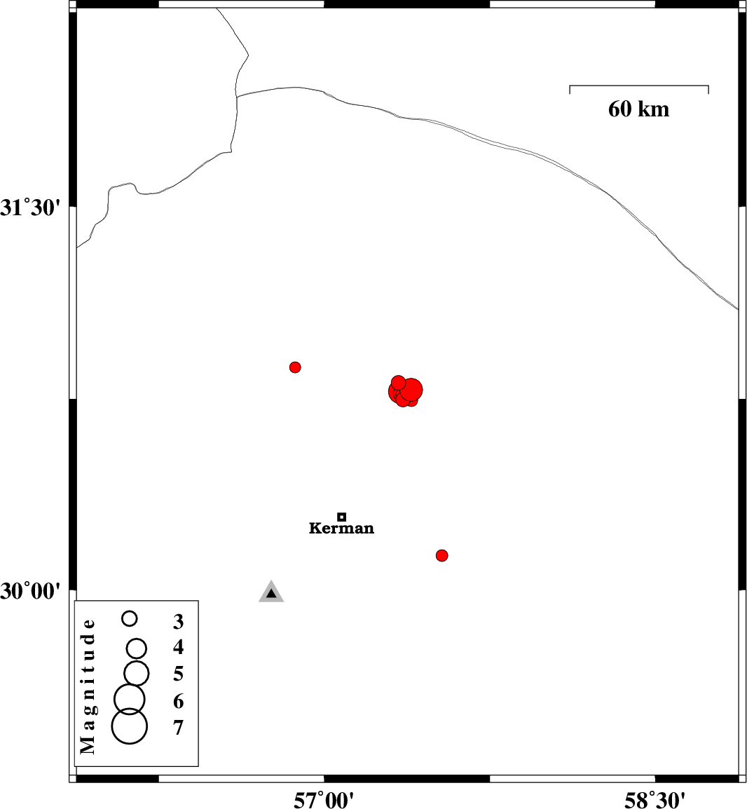 | 2017/09/20 | 02:38:00.9 | 07:08:00.9 | 30.722 | 57.398 | 14 | ML2.9 | Kerman Province, 57 km North-East of Kerman | ||