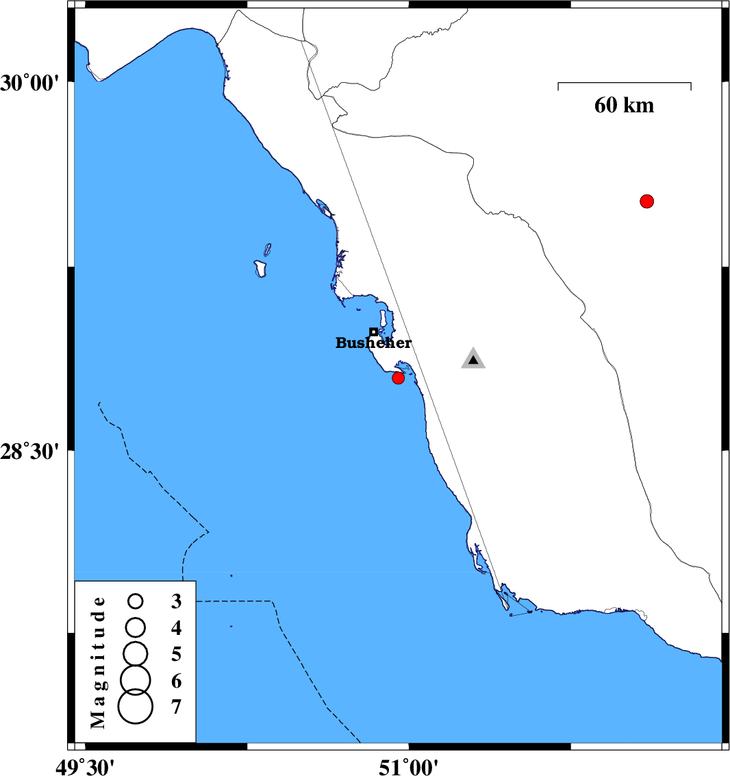 | 2017/09/21 | 01:28:28.9 | 05:58:28.9 | 28.796 | 50.95 | 6 | ML2.5 | Persian Gulf, 24 km South-East of Busheher | ||