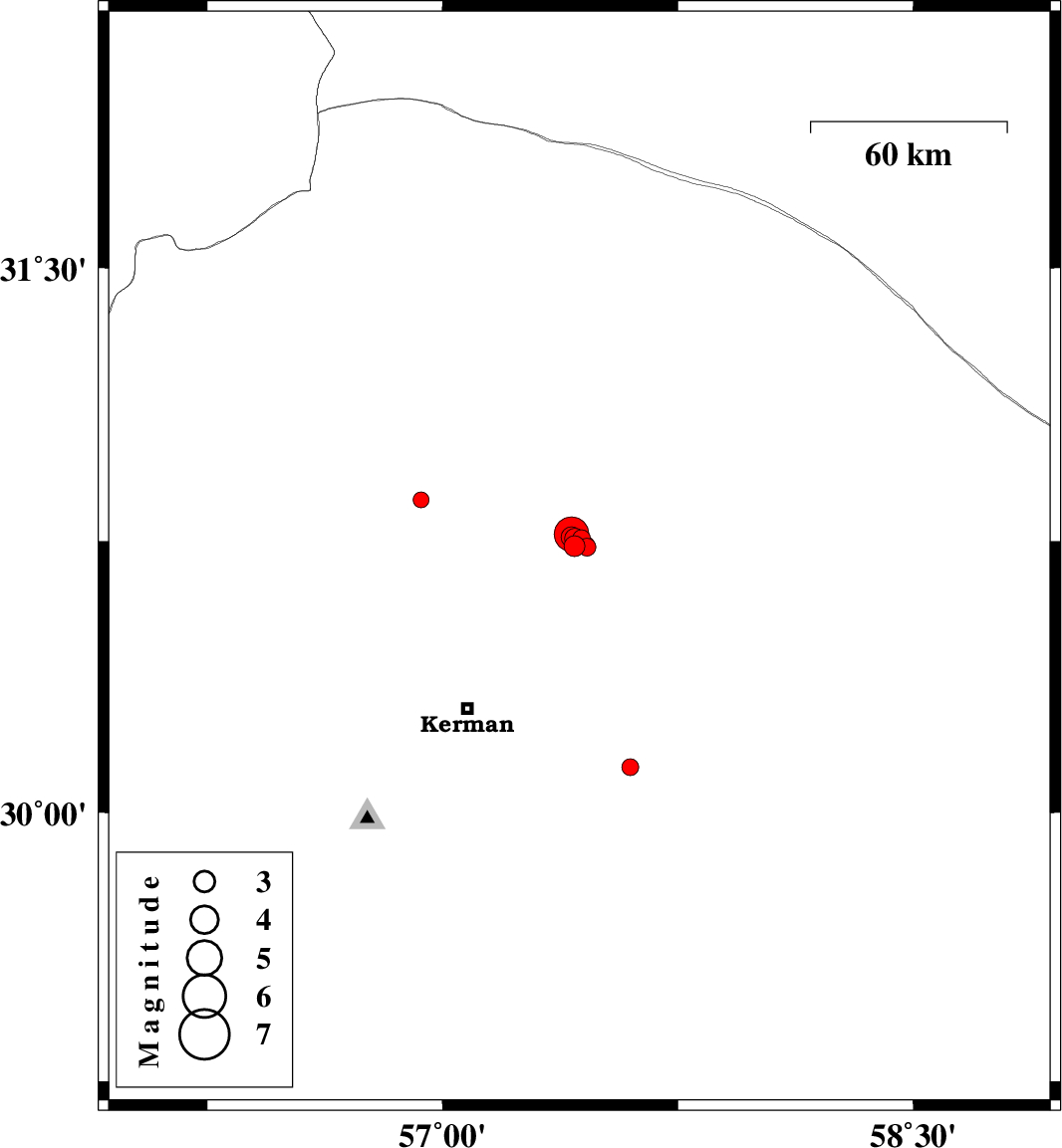 | 2017/09/20 | 14:07:38.8 | 18:37:38.8 | 30.702 | 57.397 | 15 | ML3 | Kerman Province, 55 km North-East of Kerman | ||