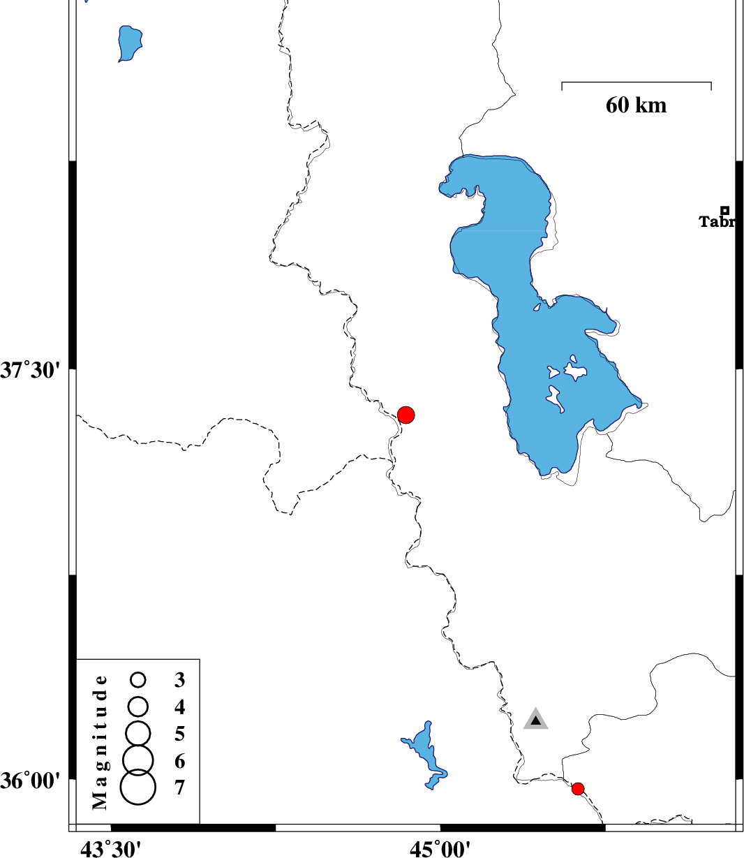 | 2017/09/26 | 06:57:02.1 | 10:27:02.1 | 37.333 | 44.842 | 14 | ML3.5 | Azarbaijan Gharbi Province, 31 km South-West of Orumiyeh | ||