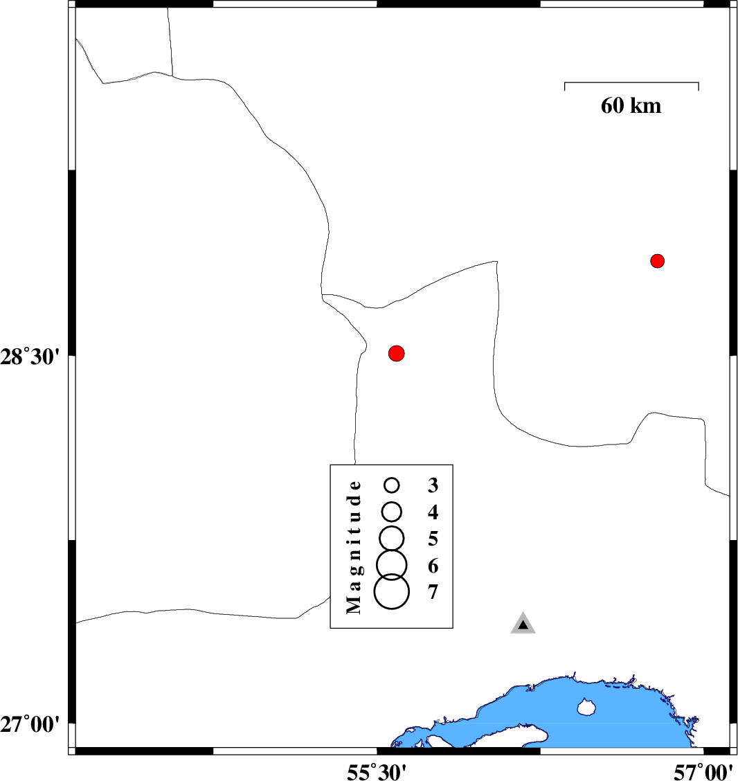 | 2017/03/13 | 05:11:16.6 | 08:41:16.6 | 27.406 | 56.19 | 14 | ML2.9 | Hormozgan Province, 26 km North of Bandar-e abbas |