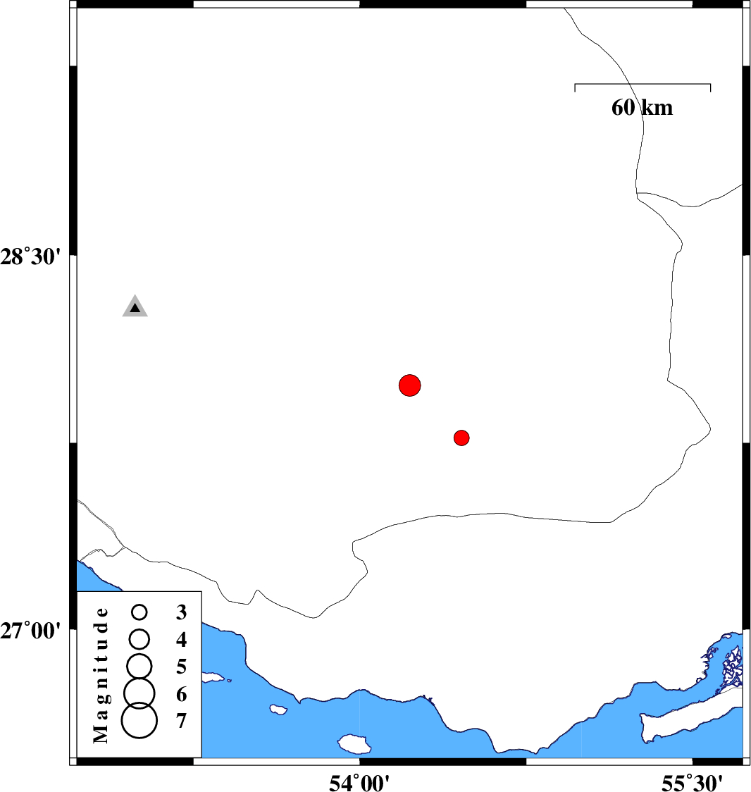 2017/09/27 | 08:28:03.5 | 11:58:03.5 | 27.98 | 54.225 | 15 | ML:4.4 | Fars Province, 35 km North-West of Lar |