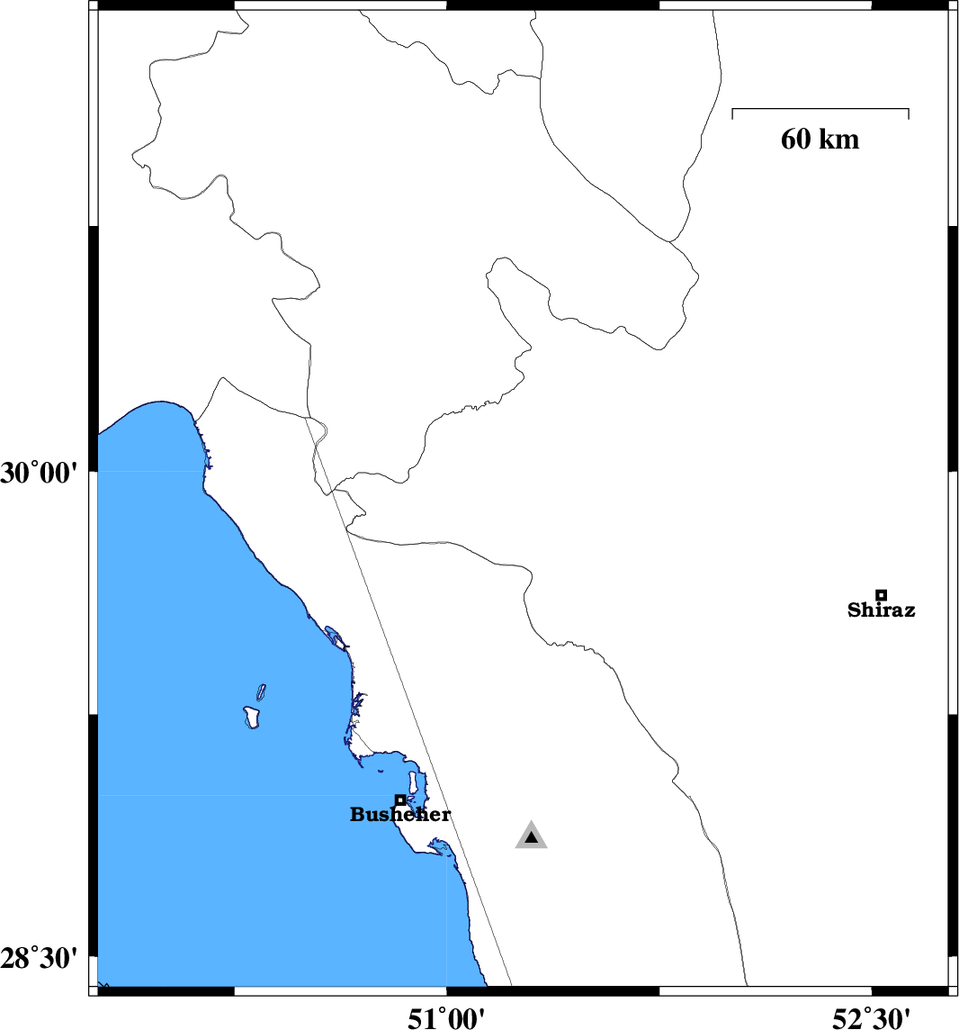 | 2017/09/12 | 00:29:40.2 | 04:59:40.2 | 29.115 | 51.158 | 14 | ML2.8 | Bushehr Province, 17 km South of Borazjan | ||