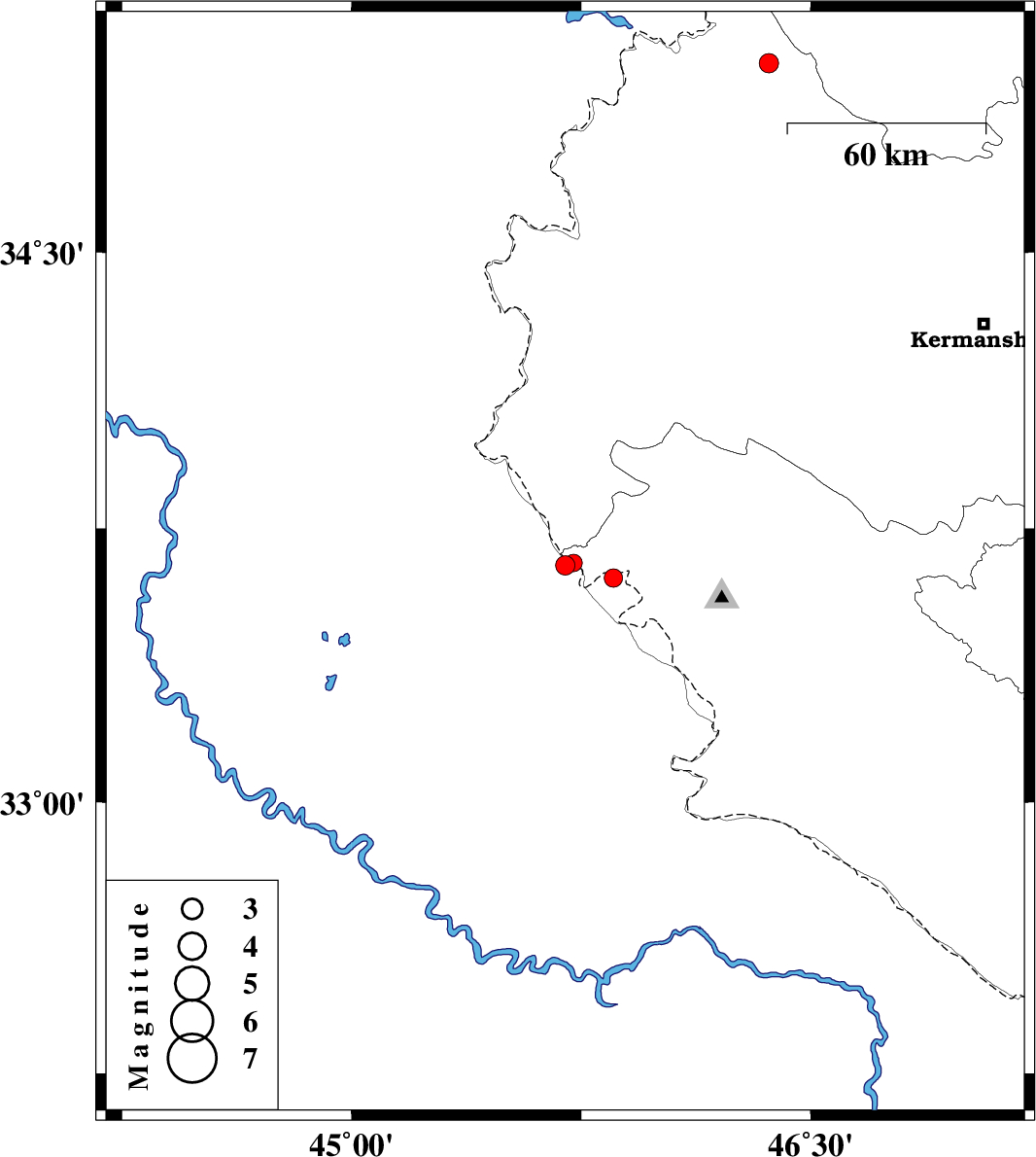 | 2017/10/05 | 13:16:05.2 | 16:46:05.2 | 33.614 | 45.856 | 14 | ML2.7 | Ilam Province, 59 km South of Gilan-E-Gharb | ||
