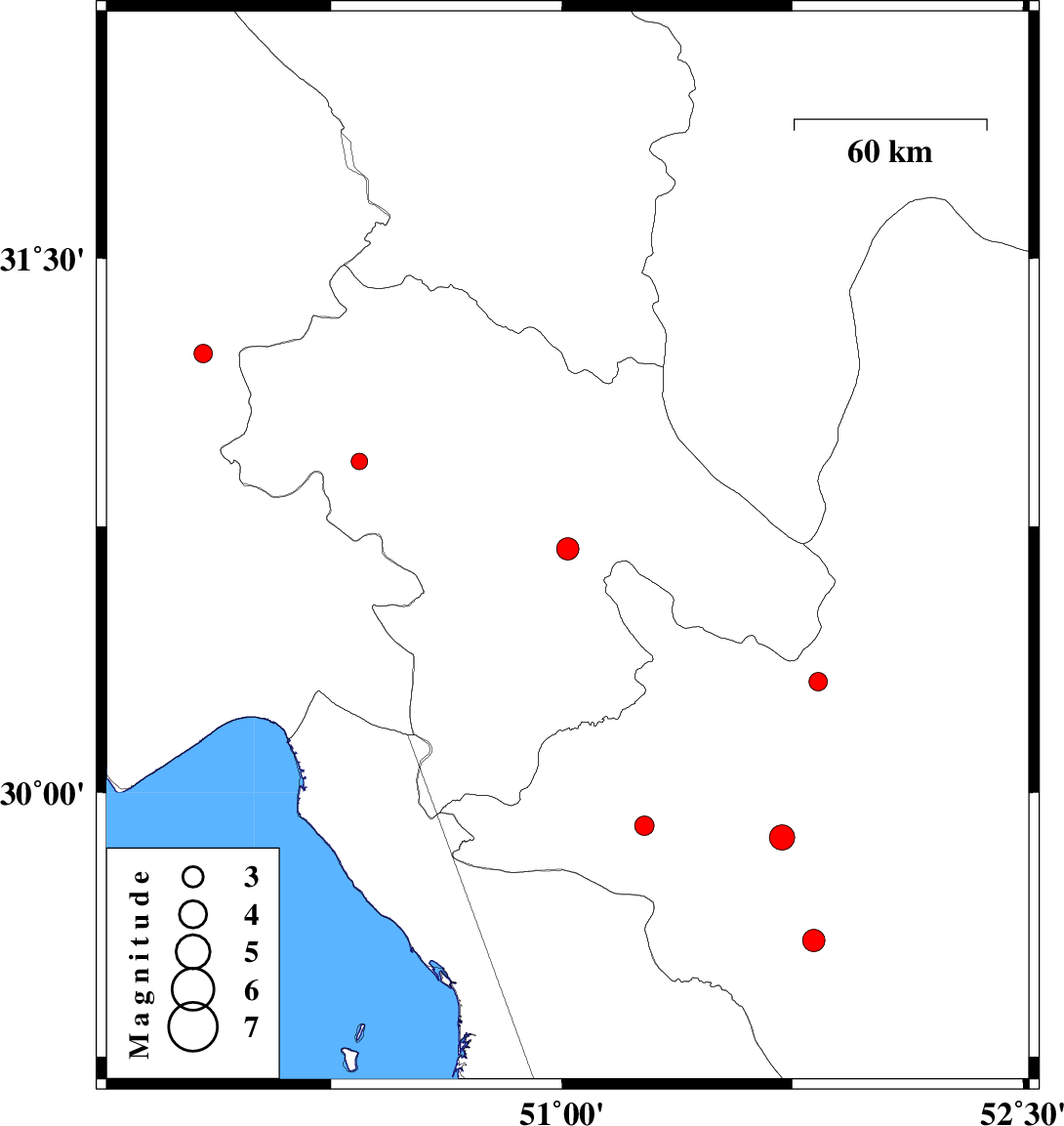 | 2017/10/02 | 06:22:28.1 | 09:52:28.1 | 29.906 | 51.269 | 14 | ML2.8 | Fars Province, 34 km South-West of Nurabad | ||