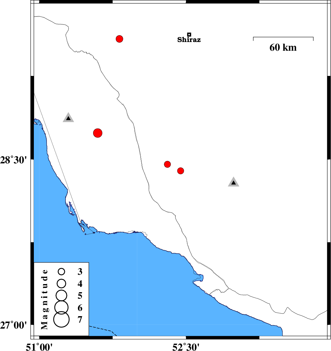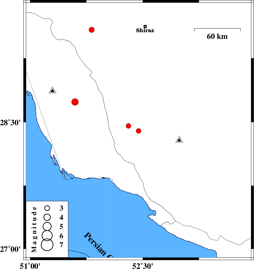 | 2017/10/04 | 08:37:52.0 | 12:07:52.0 | 28.456 | 52.311 | 15 | ML3 | Fars Province, 69 km North of Jam | ||