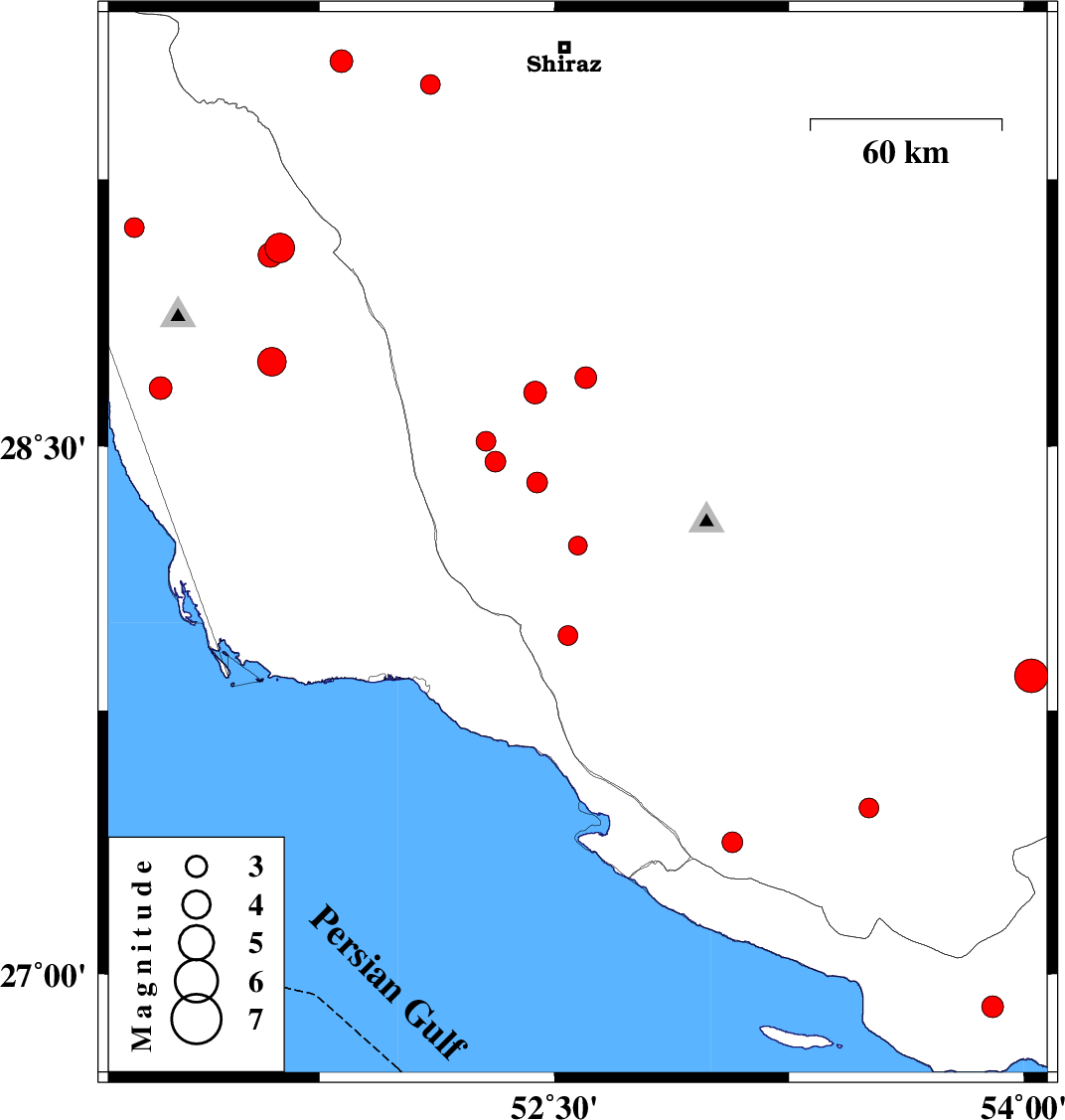 | 2017/09/16 | 05:16:21.3 | 09:46:21.3 | 29.515 | 52.103 | 14 | ML2.8 | Fars Province, 43 km South-West of Shiraz | ||