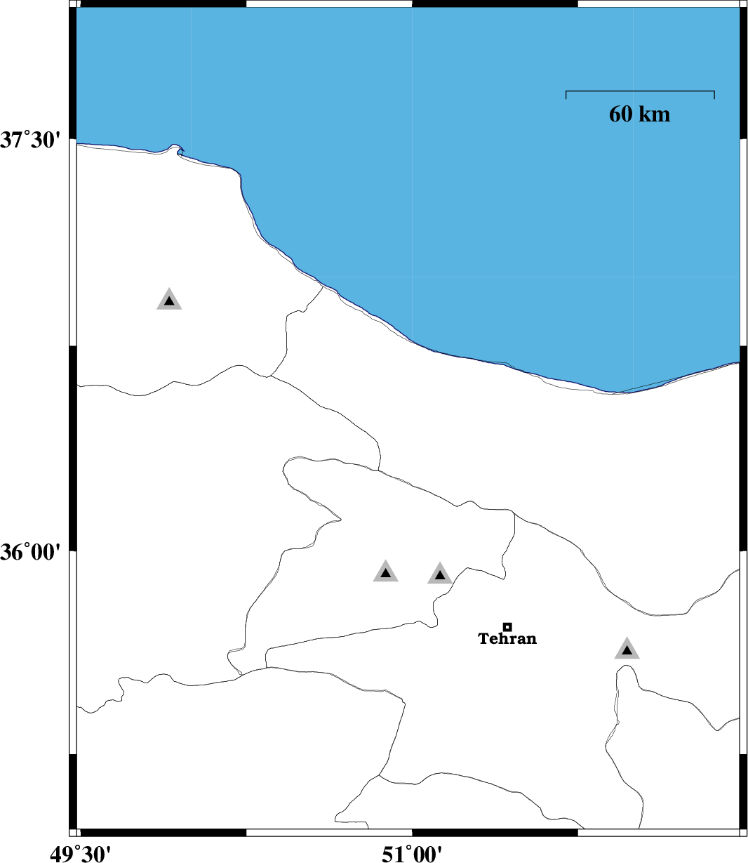 | 2017/10/01 | 19:55:05.2 | 23:25:05.2 | 36.981 | 49.525 | 6 | ML2.9 | Gilan Province, 20 km North of Rudbar |