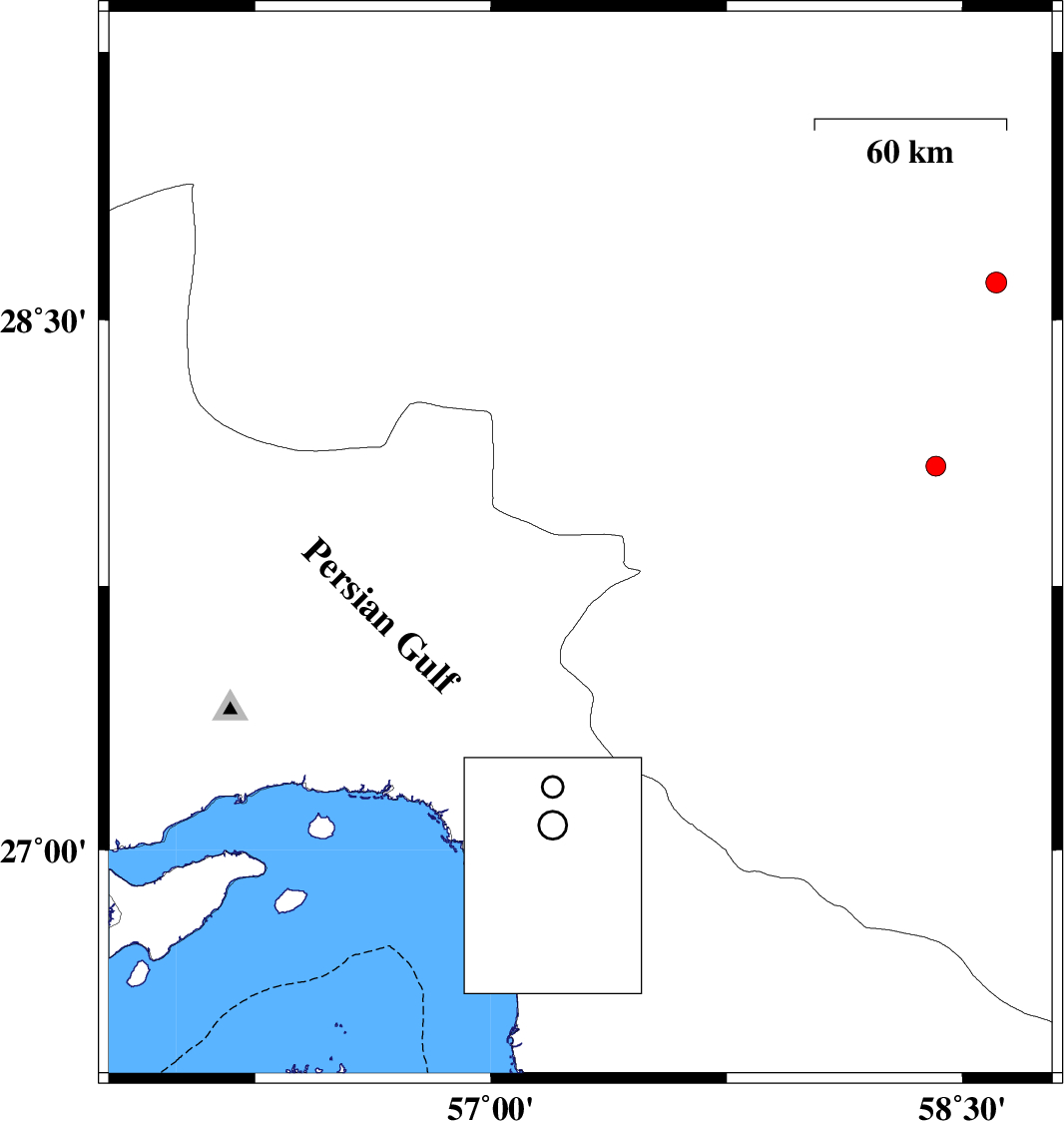 2017/10/05 | 16:03:29.2 | 19:33:29.2 | 27.864 | 57.285 | 14 | ML:2.8 | Hormozgan Province, 49 km North of Dehbarez | ||