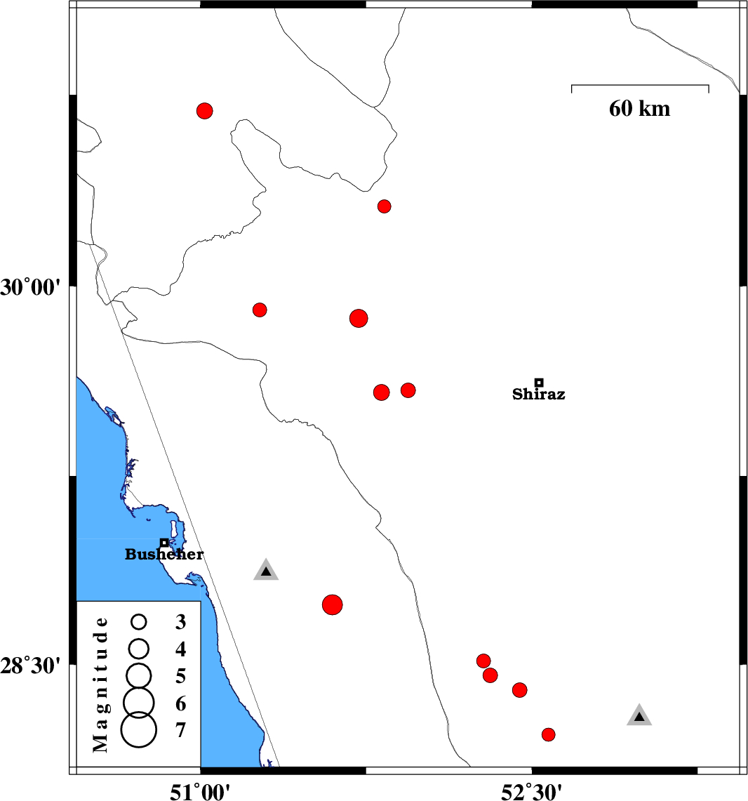 | 2017/10/02 | 06:22:28.1 | 09:52:28.1 | 29.906 | 51.269 | 14 | ML2.8 | Fars Province, 34 km South-West of Nurabad | ||