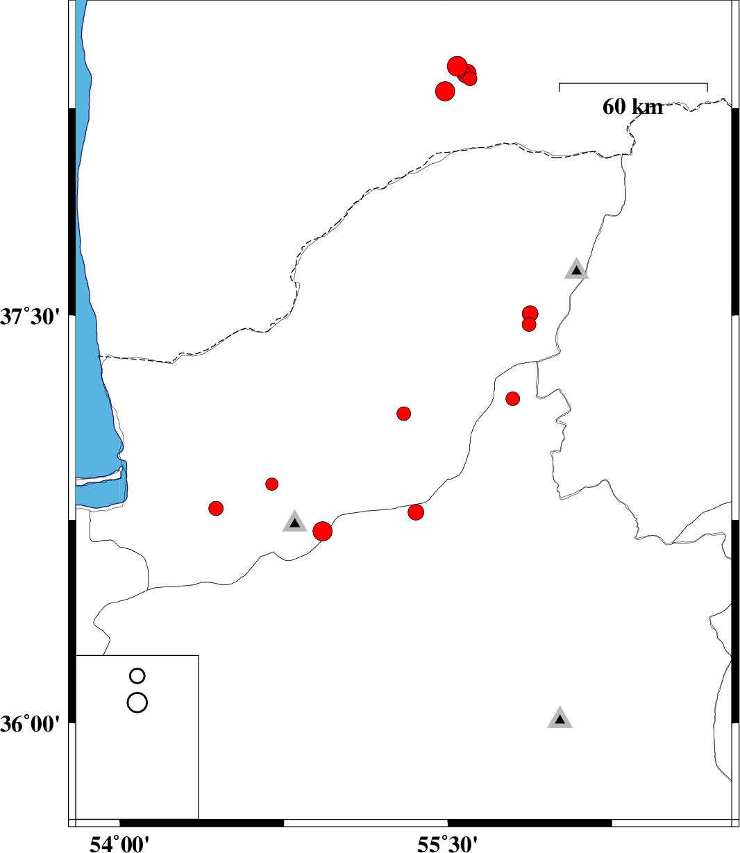 | 2017/03/01 | 10:19:44.1 | 13:49:44.1 | 36.793 | 54.439 | 15 | ML3 | Golestan Province, 5 km of Gorgan |