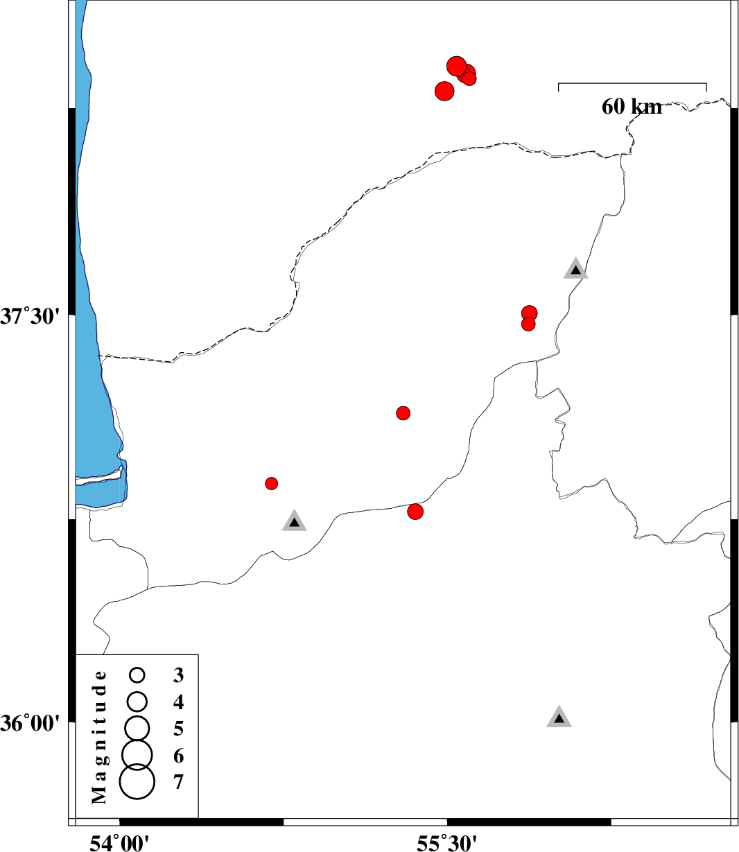 | 2017/03/18 | 23:10:50.2 | 02:40:50.2 | 36.778 | 55.354 | 15 | ML3.2 | Semnan Province, 32 km South-East of Ramian | ||