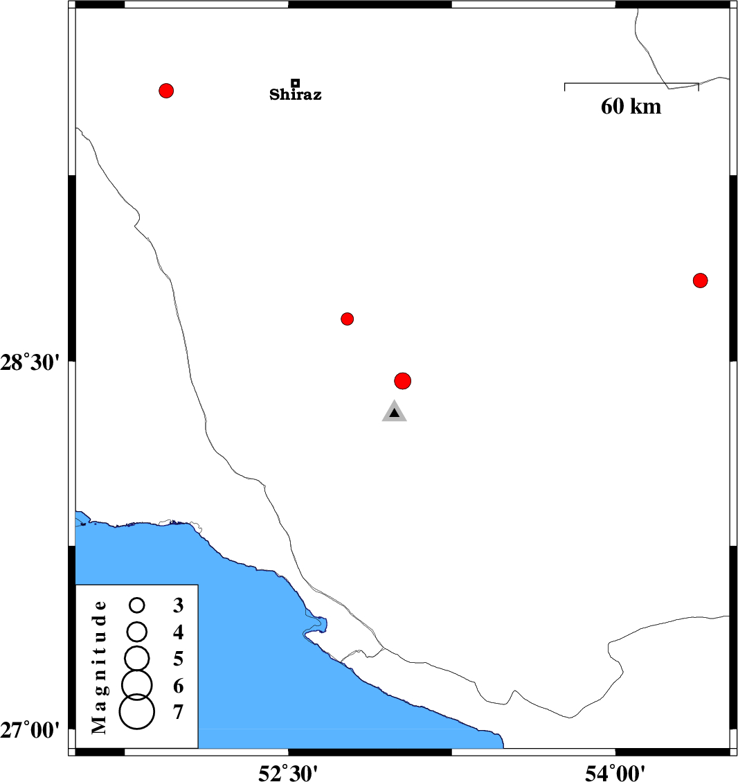 | 2017/10/06 | 04:16:58.0 | 07:46:58.0 | 29.589 | 51.94 | 15 | ML3 | Fars Province, 28 km -East of Kazerun |