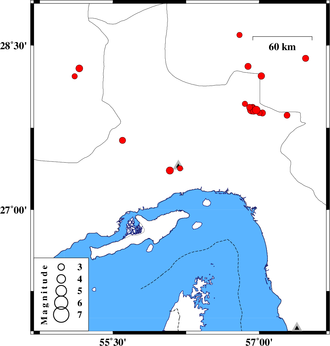 | 2017/10/08 | 08:47:00.9 | 12:17:00.9 | 27.636 | 55.598 | 6 | ML3 | Hormozgan Province, 81 km South-West of Hajiabad | ||