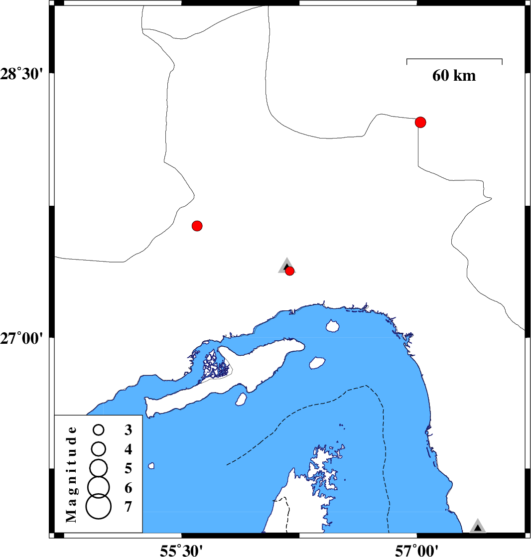 | 2017/10/08 | 08:47:00.9 | 12:17:00.9 | 27.636 | 55.598 | 6 | ML3 | Hormozgan Province, 81 km South-West of Hajiabad |