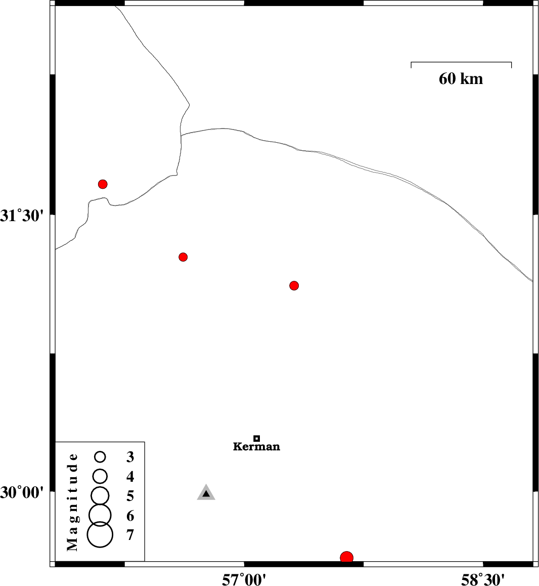 | 2017/03/16 | 12:29:22.6 | 15:59:22.6 | 29.635 | 57.643 | 14 | ML3.7 | Kerman Province, 108 km North of Jiroft | ||