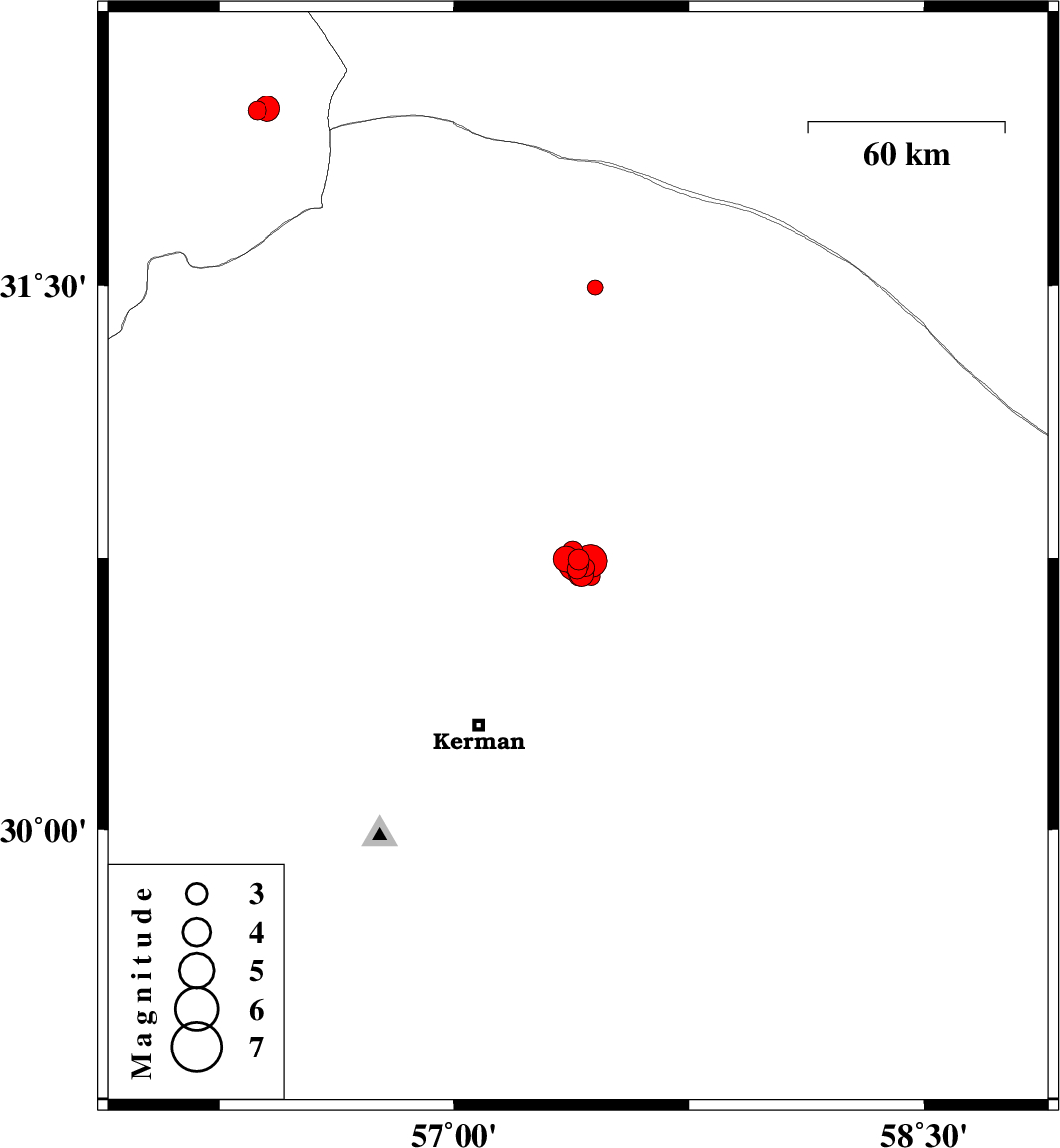| 2017/09/20 | 00:08:15.0 | 04:38:15.0 | 30.734 | 57.386 | 15 | ML4.9 | Kerman Province, 58 km North-East of Kerman |