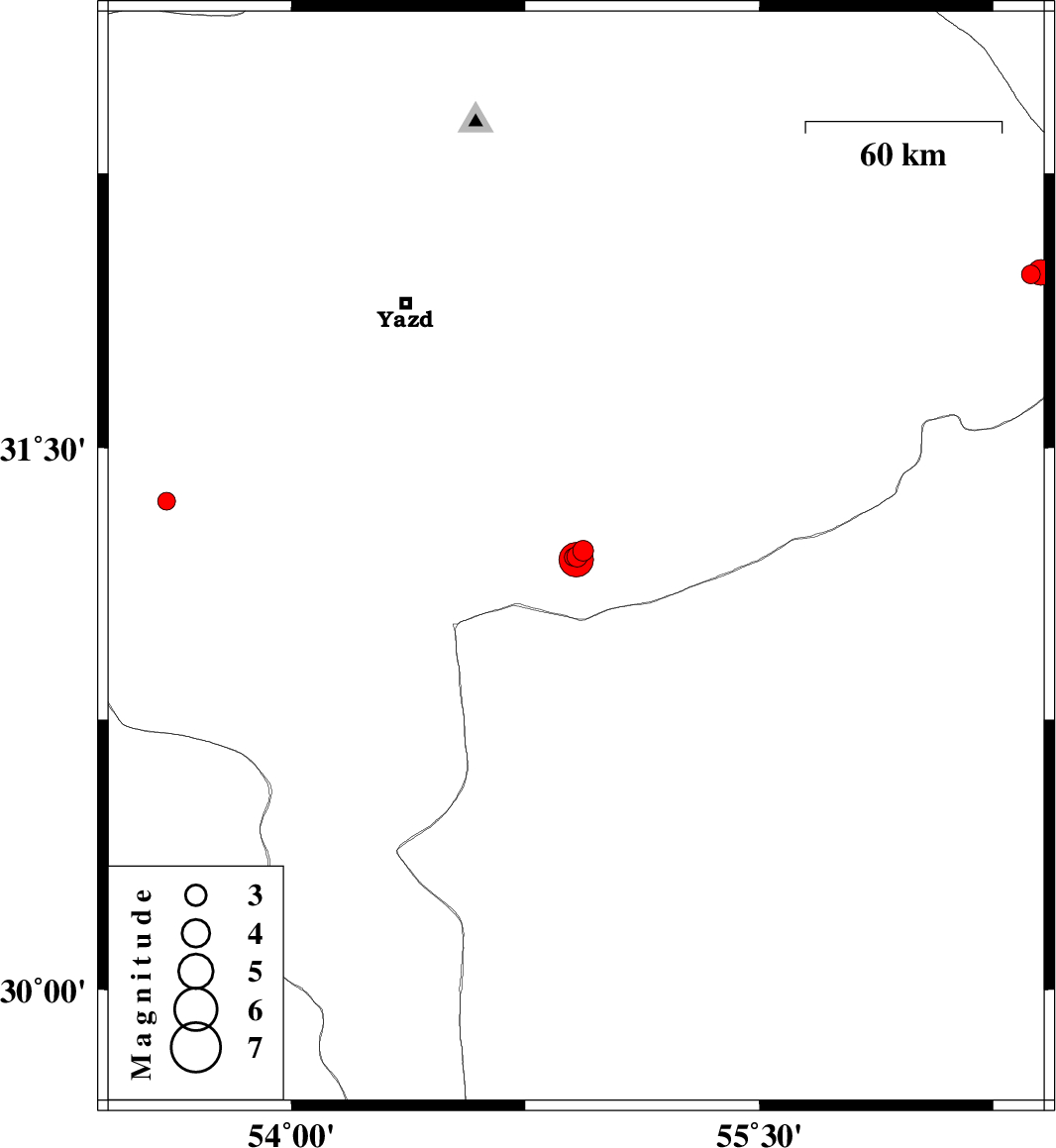 | 2017/10/18 | 14:37:19.2 | 18:07:19.2 | 31.191 | 54.913 | 15 | ML5 | Yazd Province, 62 km South-East of Mehriz | ||