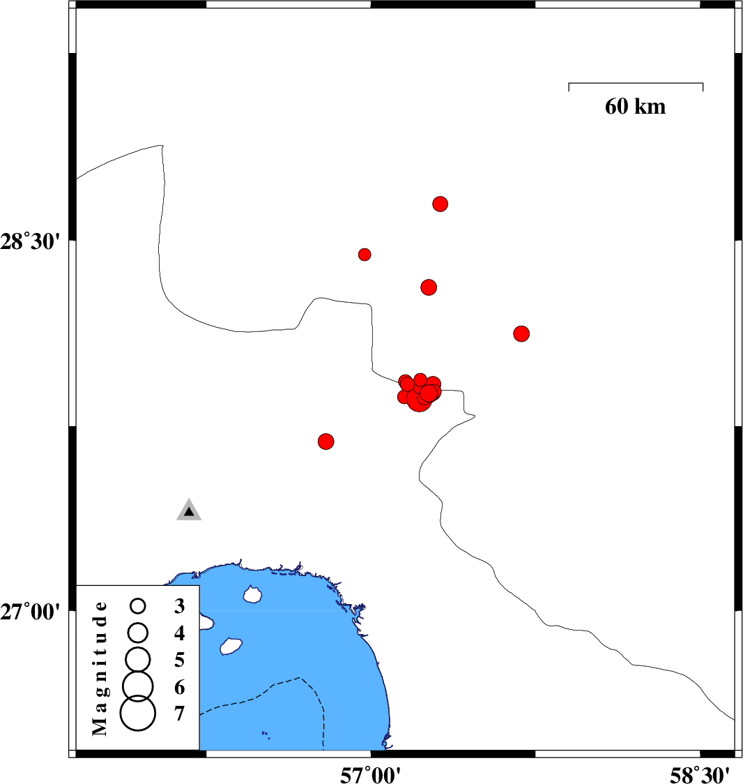 2017/10/23 02:05:37.9 05:35:37.9 27.9357.15714 ML2.8 Kerman Province, 53 km -West of Kahnuj