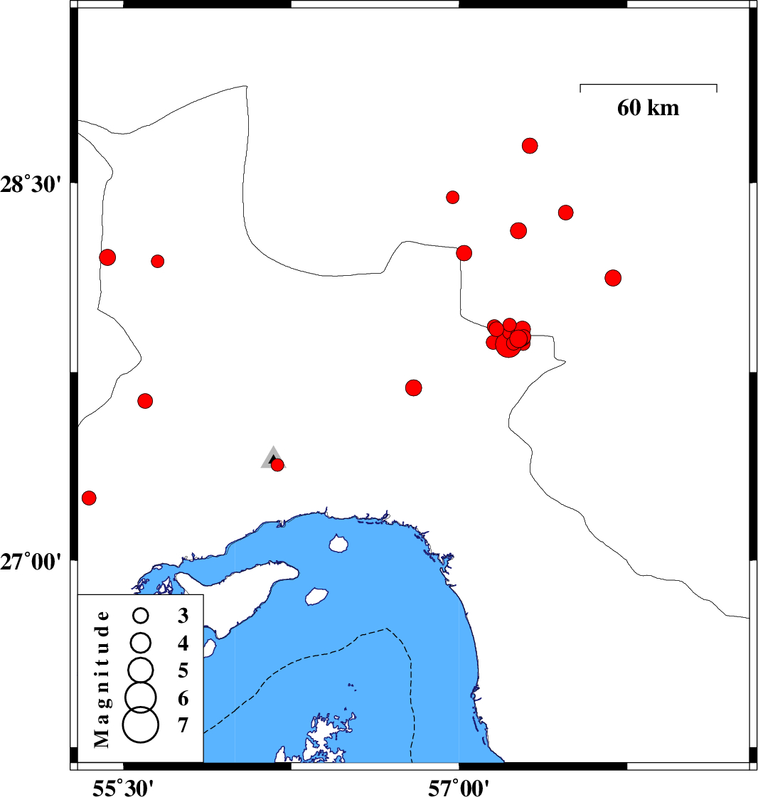 | 2017/10/08 | 08:47:00.9 | 12:17:00.9 | 27.636 | 55.598 | 6 | ML3 | Hormozgan Province, 81 km South-West of Hajiabad | ||