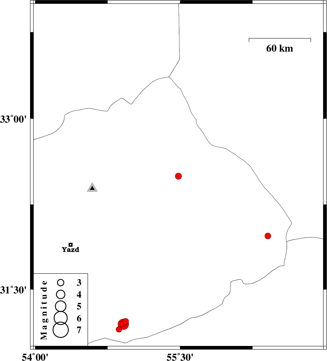 2017/10/22 | 04:10:21.5 | 07:40:21.5 | 31.973 | 56.408 | 14 | ML:2.8 | Yazd Province, 87 km North-West of Ravar | ||