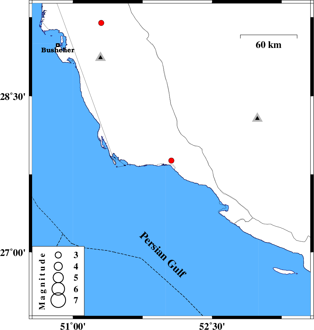 2017/10/22 | 04:51:30.8 | 08:21:30.8 | 29.196 | 51.305 | 16 | ML:2.7 | Bushehr Province, 12 km of Borazjan |