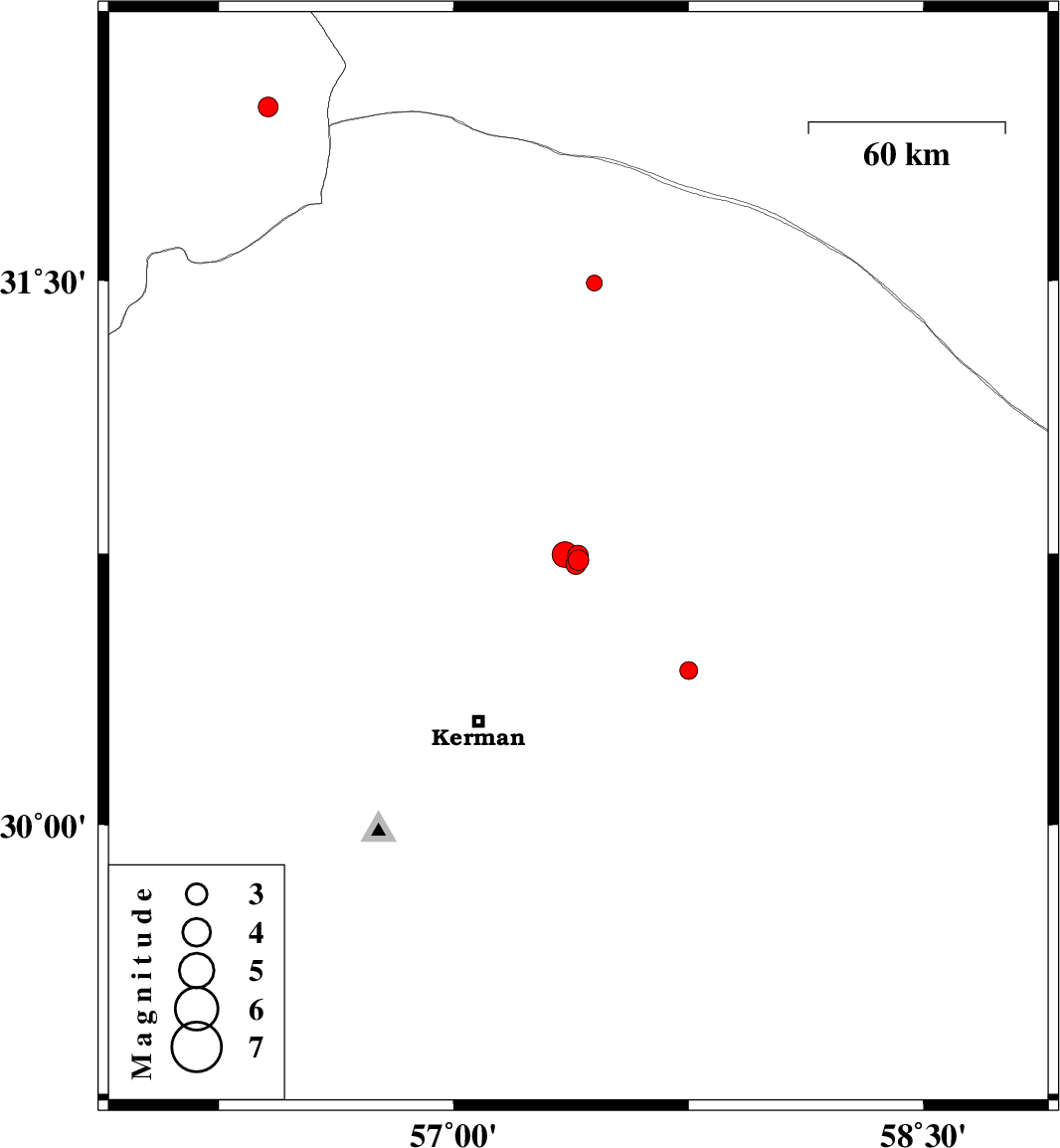 | 2017/09/30 | 19:04:22.8 | 22:34:22.8 | 30.722 | 57.395 | 14 | ML2.5 | Kerman Province, 57 km North-East of Kerman |