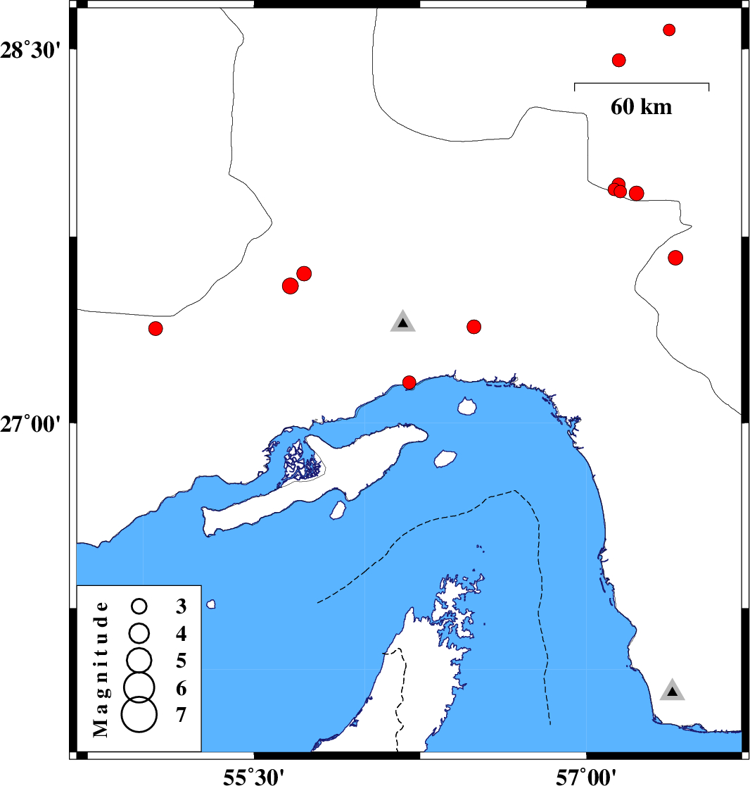 | 2017/10/31 | 14:19:17.5 | 17:49:17.5 | 27.164 | 56.2 | 14 | ML2.7 | Hormozgan Province, 8 km of Bandar-e abbas | ||