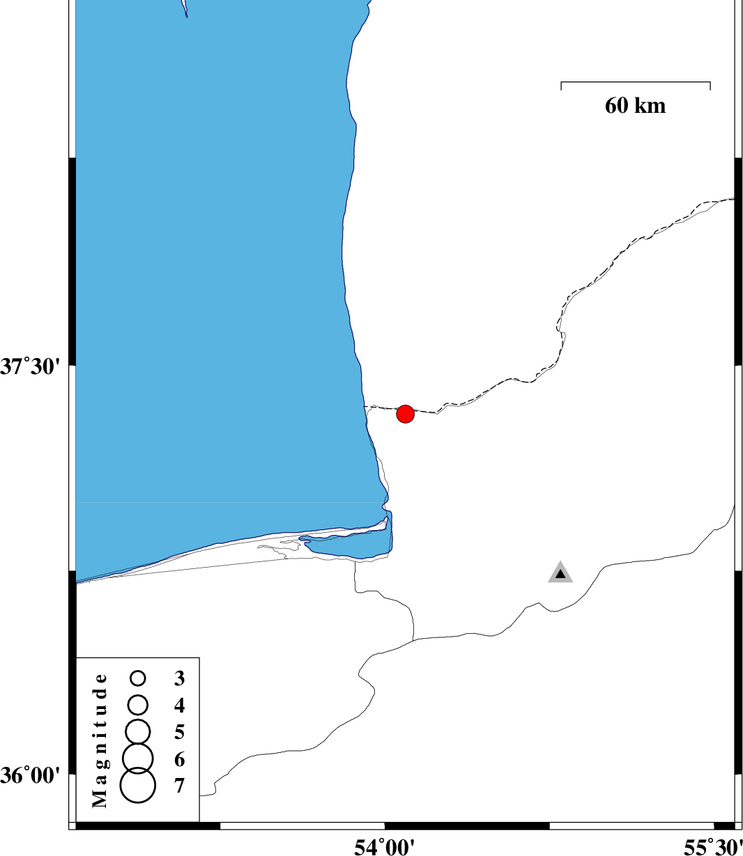 | 2017/11/01 | 08:34:04.1 | 12:04:04.1 | 37.322 | 54.093 | 16 | ML3.7 | Golestan Province, 47 km North of Bandar-e torkaman | ||