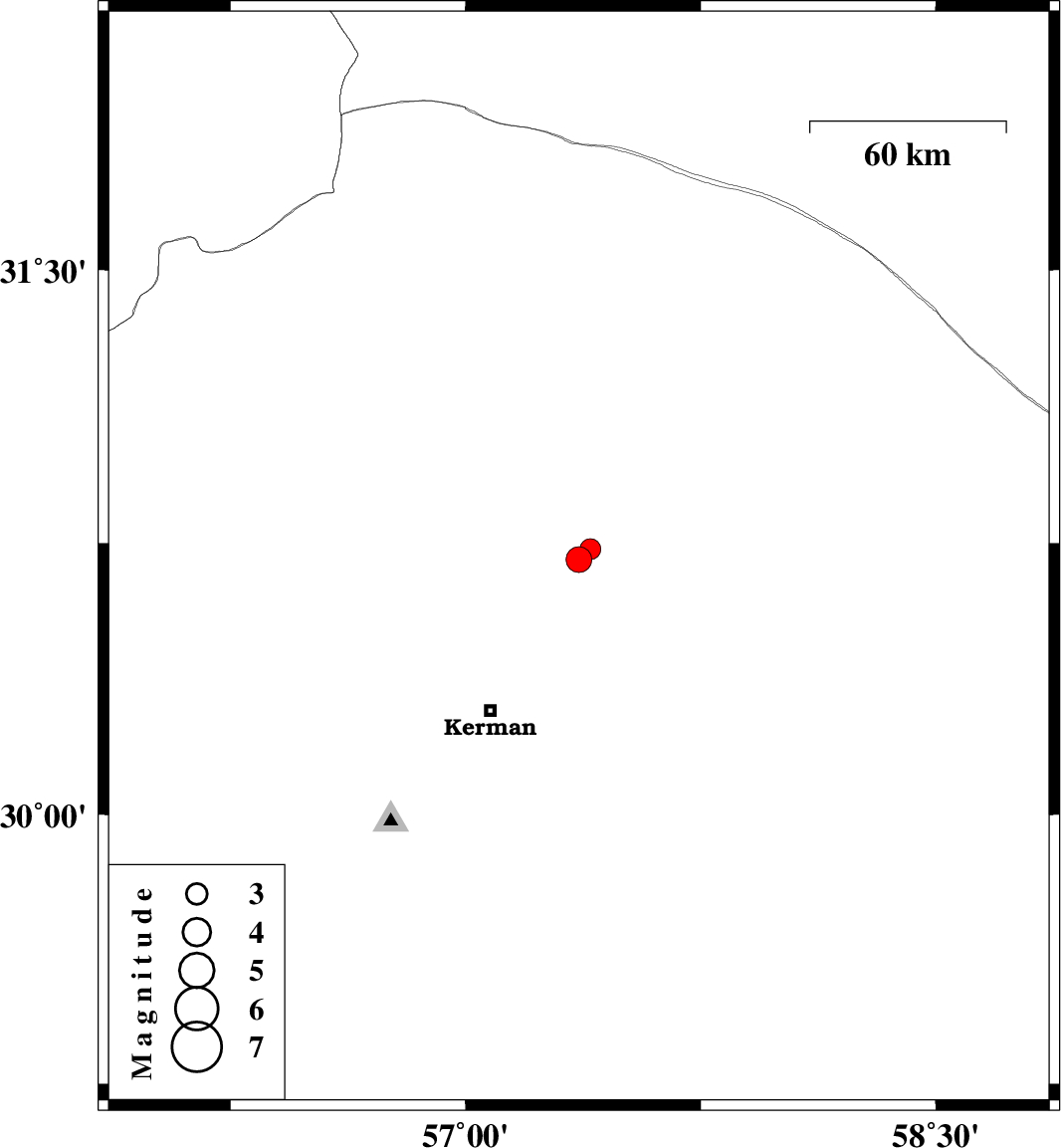 | 2017/10/28 | 12:47:37.9 | 16:17:37.9 | 30.733 | 57.398 | 14 | ML3 | Kerman Province, 58 km North-East of Kerman |