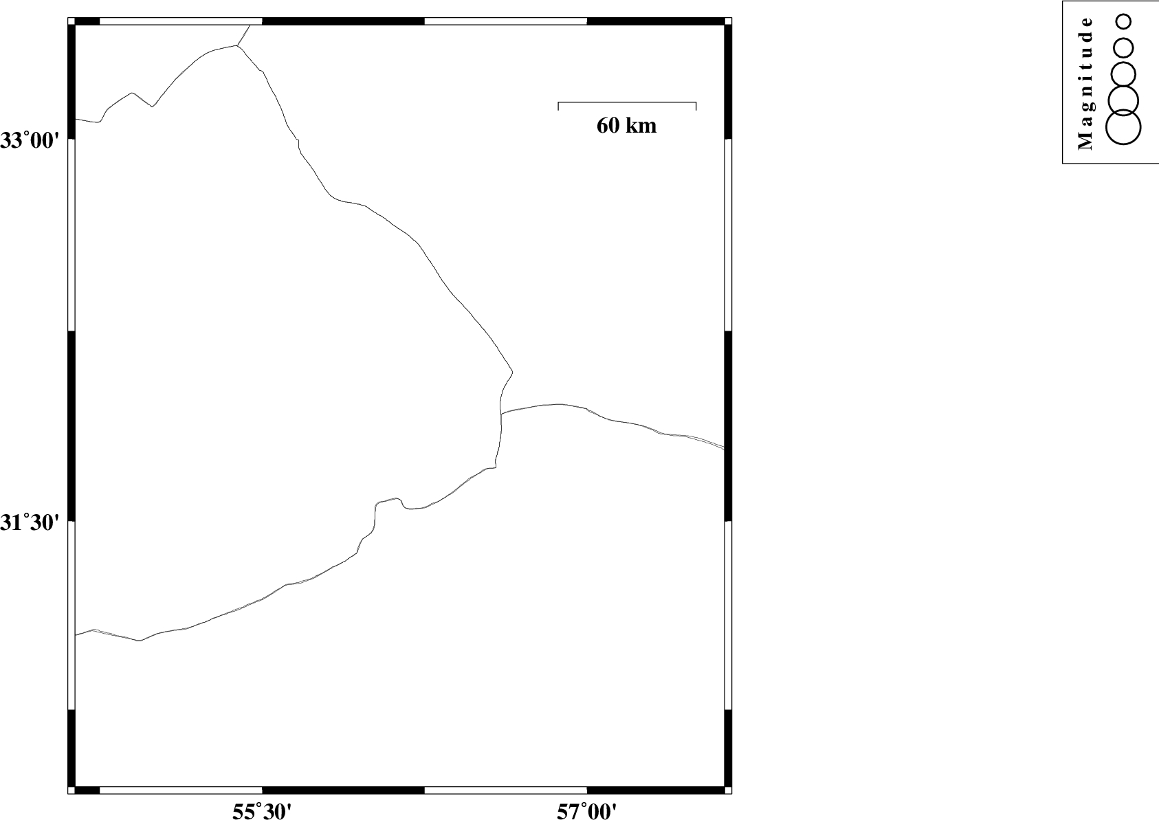 | 2017/10/11 | 03:58:21.4 | 07:28:21.4 | 30.747 | 57.356 | 14 | ML3.6 | Kerman Province, 58 km North-East of Kerman |