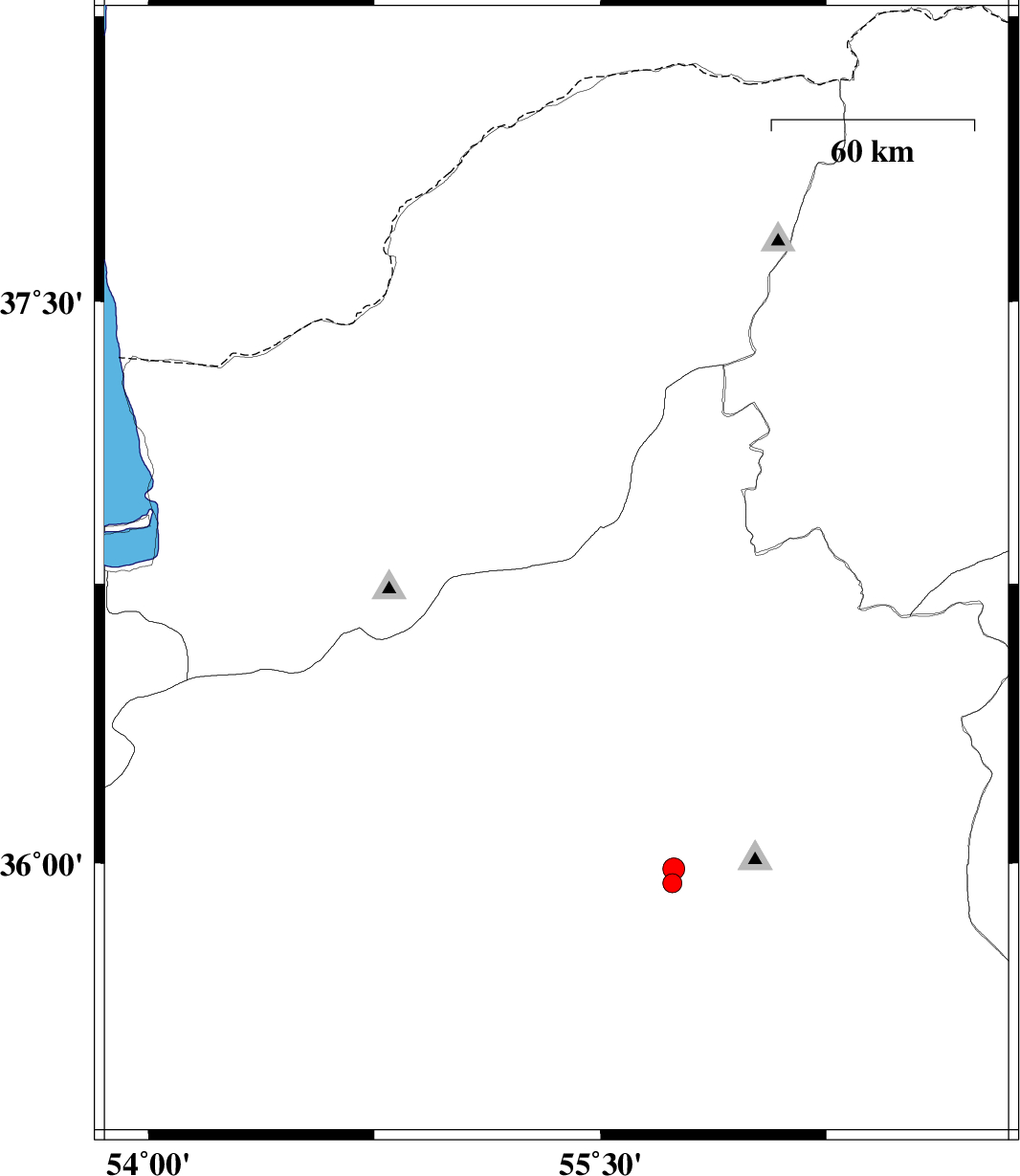 | 2017/03/12 | 19:08:10.5 | 22:38:10.5 | 36.708 | 54.926 | 17 | ML4 | Golestan Province, 23 km South of Ali Abad |