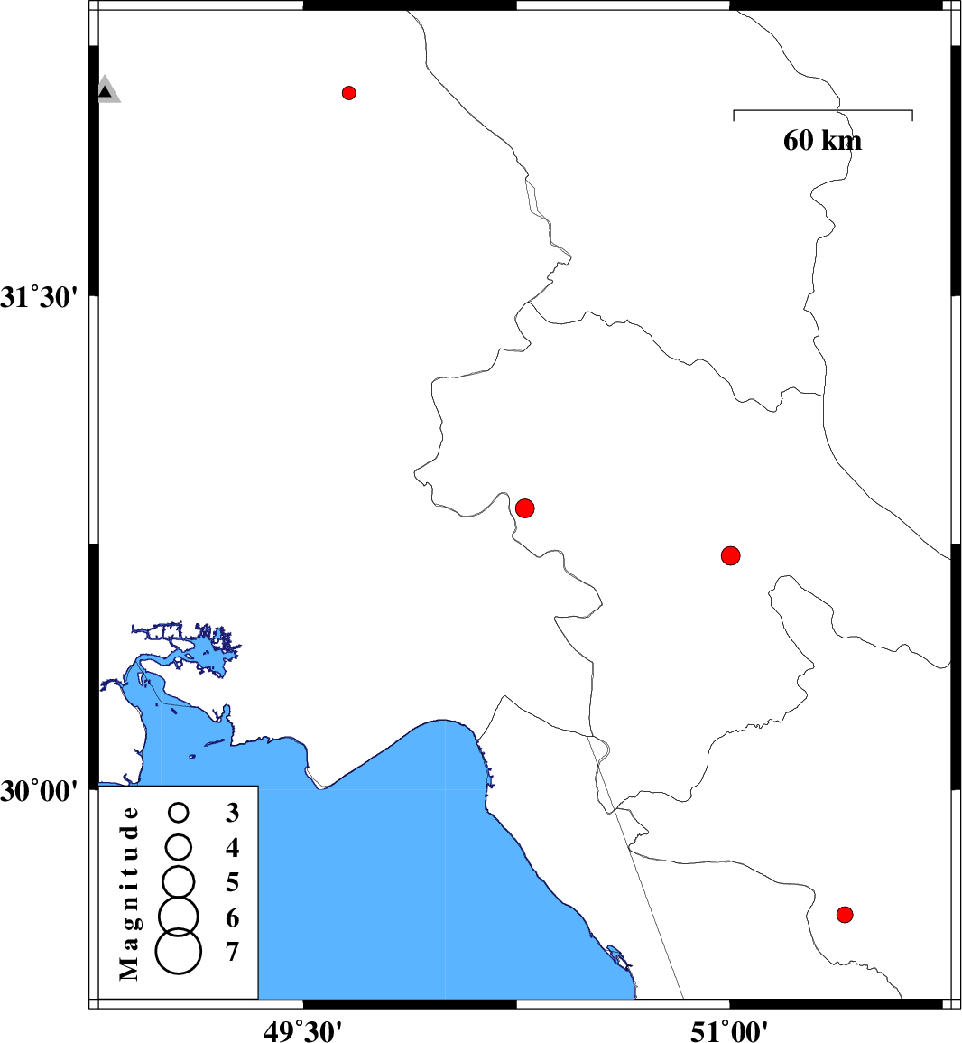| 2017/11/07 | 12:14:35.3 | 15:44:35.3 | 32.109 | 49.66 | 14 | ML2.1 | Khoozestan Province, 36 km North-West of Izeh | ||