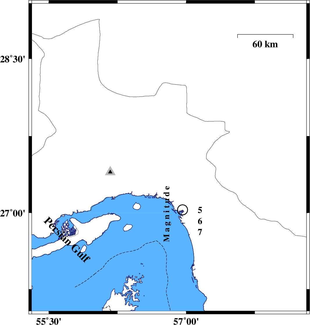 2017/11/11 | 00:37:00.9 | 04:07:00.9 | 27.535 | 56.814 | 14 | ML:3.7 | Hormozgan Province, 44 km North-West of Dehbarez | ||